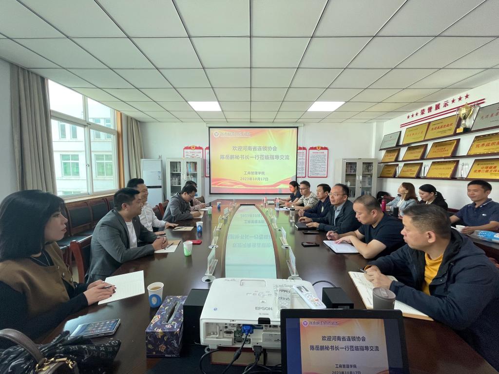 10月17日上午,河南省连锁经营协会秘书长陈岳鹏、副秘书长李艳宾携国际漆匠连锁董事长张玉丹等会员单位莅临ok138cn太阳集团529指导交流。ok138cn太阳集团529院长贾宪军、副院长陈先锋,市场营销、数字化营销、工商管理和连锁与智慧零售教研室主任及教师代表参加座谈交流。
