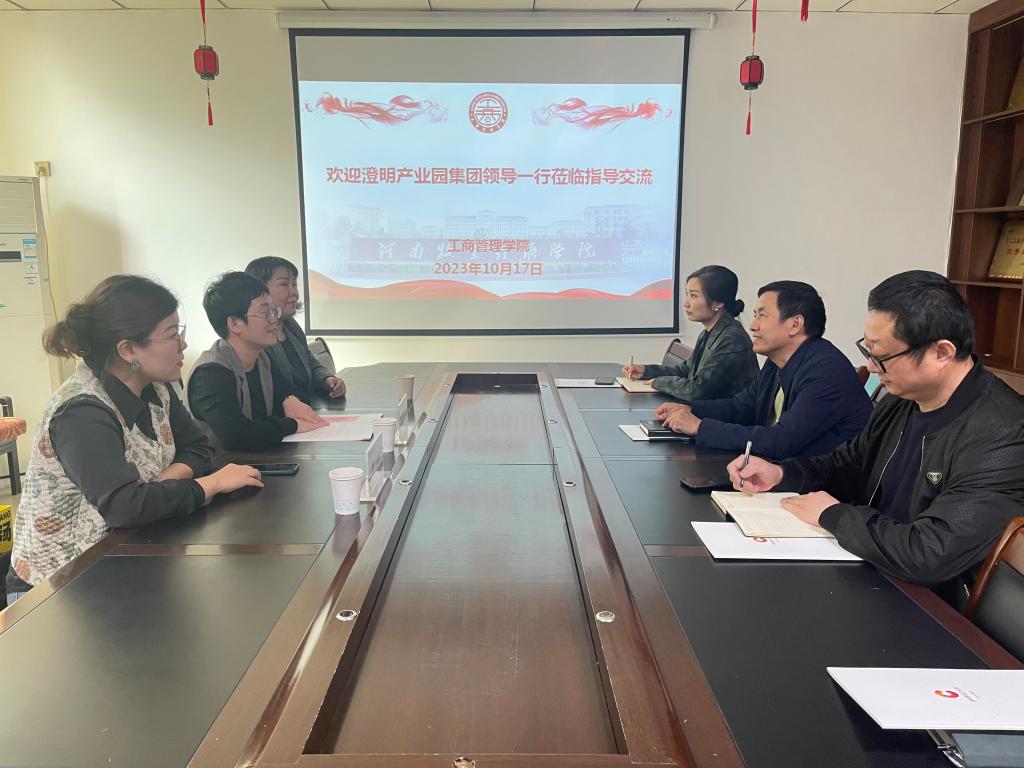 10月17日上午,澄明产业园集团人力资源部靳营、韩盼、刘海燕三位经理莅临我院进行校企合作洽谈。副院长陈先锋、副书记詹珅、教学办副主任王璇及就业专员王梦如老师参加座谈,活动由陈先锋主持。