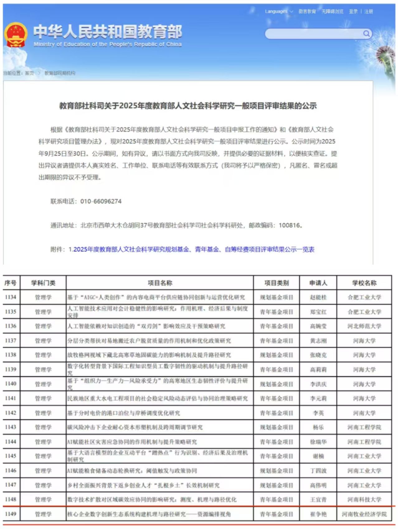 2025年9月25日,教育部社科司公布了2025年度教育部人文社会科学研究一般项目立项名单,ok138cn太阳集团529崔争艳博士主持的青年项目《核心企业数字创新生态系统构建机理与路径研究——资源编排视角》获得立项。该项目从资源编排的理论视角出发,深入探究核心企业如何构建与演化数字创新生态系统,具有重要的理论前沿性与实践指导意义。