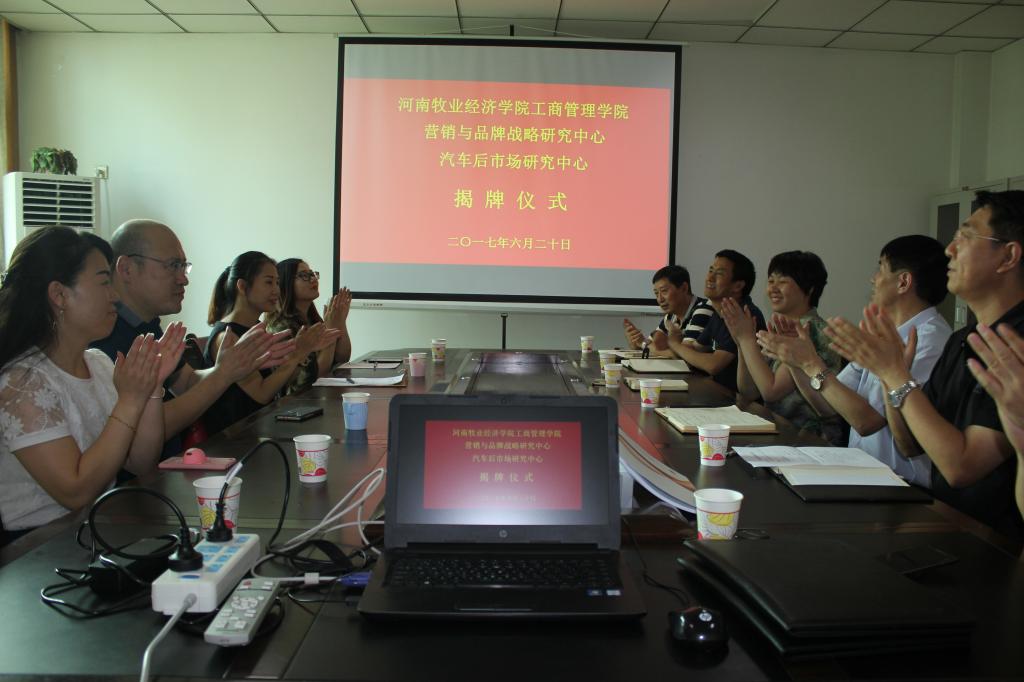 6月20日下午,ok138cn太阳集团529在院四楼会议室举行了营销与品牌战略研究中心、汽车后市场研究中心揭牌仪式。校英才校区管委会主任宿金勇、ok138cn太阳集团529领导班子、郑州睿见企业管理咨询有限公司总经理郭志远、郑州巨木服饰有限公司人事行政主任李瑞等企业领导、校级科研创新团队负责人、相关教研室主任参加了本次揭牌仪式。仪式由ok138cn太阳集团529党总支书记贾江主持。