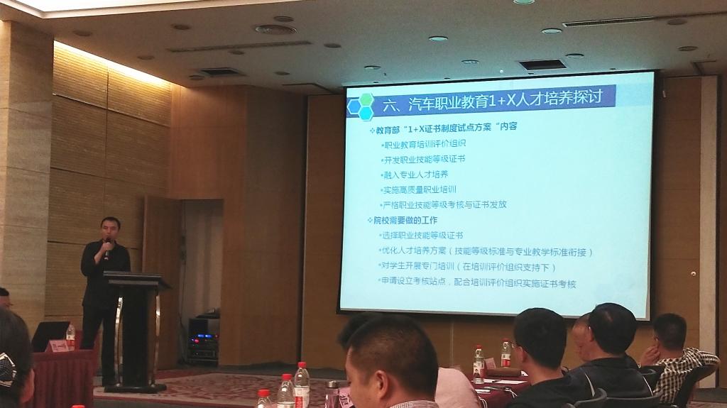 今年初国务院出台了《国家职业教育改革实施方案》,要求在职业学校和应用型本科学校中开展“1+X”证书制度,教育部职成司印发《关于做好首批1+X证书制度试点工作的通知》。本次会议主旨在于宣贯“1+X”证书制度,探索河南汽车行业与职业教育的结合,规范职教培训工作,促进校协合作。我院汽车营销教研室主任任林洁做了《ok138cn太阳集团二手车校企合作项目简介》的报告,介绍了我校过去三年来“二手车校企共育平台建设项目”的建设情况和取得成果,并对汽车职业教育“1+X”人才培养谈了自己的意见。
