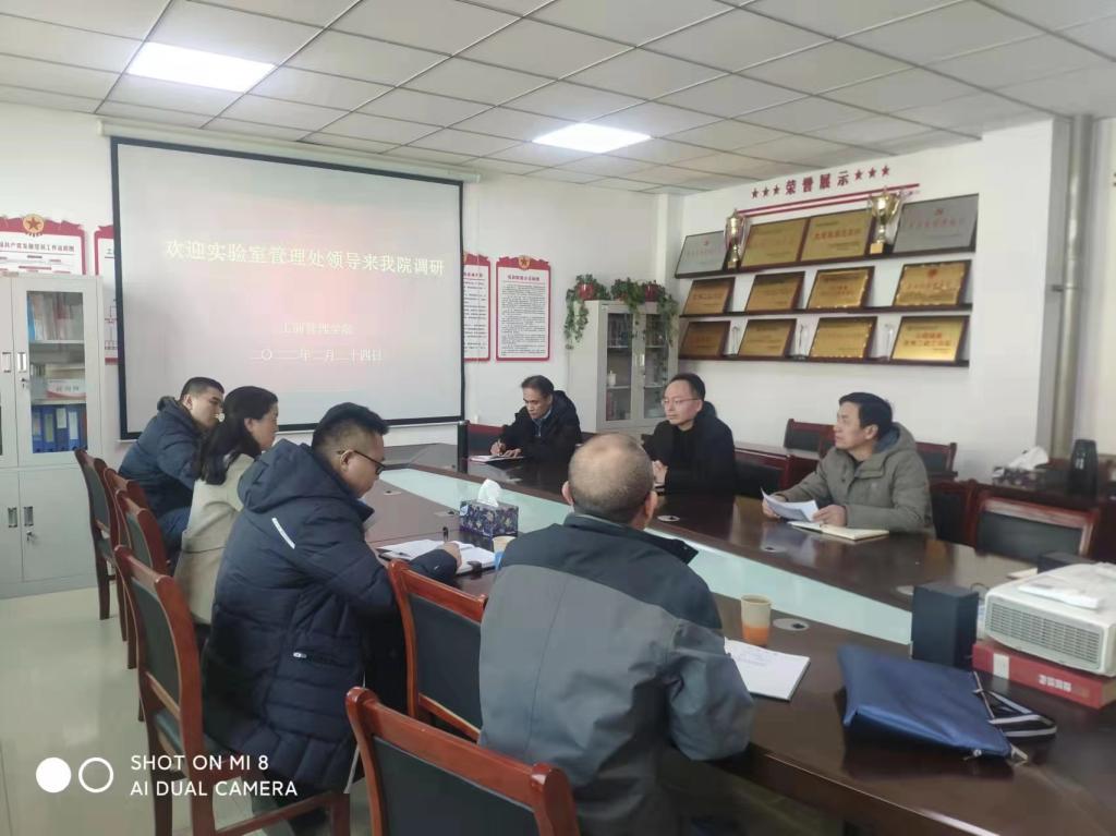 贾宪军院长首先对王处长一行的到来表示欢迎。王鑫磊处长说明了本次来学院调研的目的,主要是收集大家对实验室管理工作的意见和建议,了解学院实验室建设与管理中存在的困难和问题,希望大家多提意见和建议,为进一步提升学校实验室管理工作出谋划策。副院长陈先锋介绍了我院实验室建设、实验室管理、实验室使用,以及本学期开学初实验室工作部署及准备等情况。并就学院实验室建设与管理中存在的场地、实验人员、设备、职能分工、信息填报等问题及建议进行了集中反馈和说明。