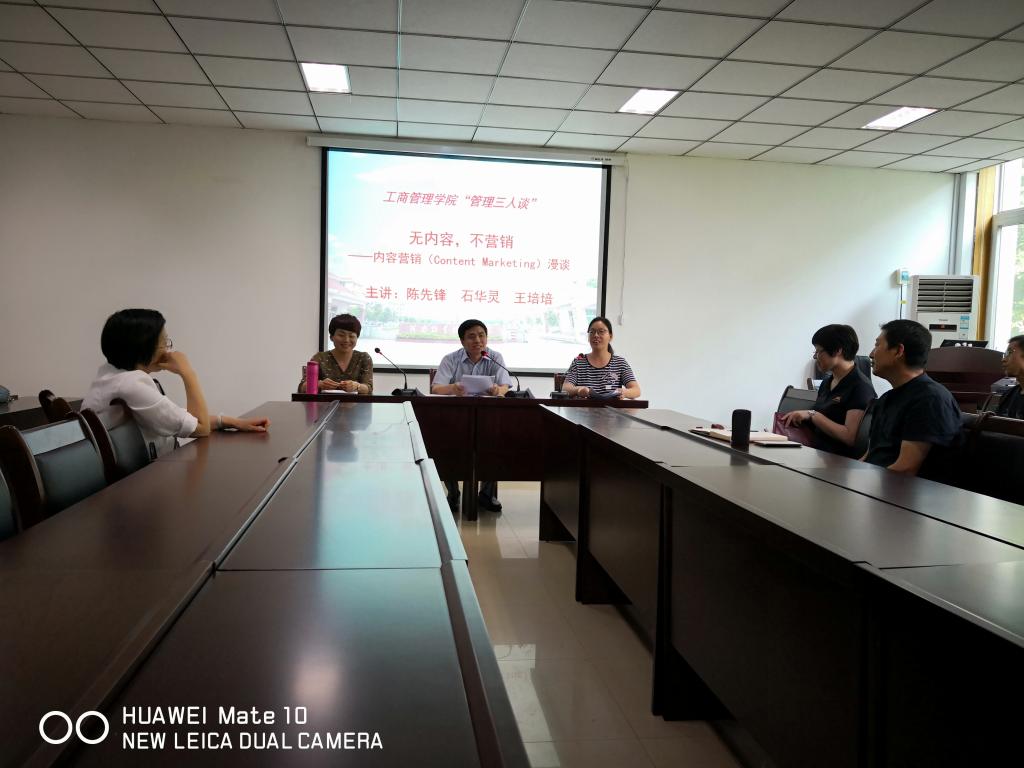 为营造浓厚的学术氛围,进一步提升和激发老师们的科研激情,ok138cn太阳集团529结合工作实际,邀请副院长陈先锋、营销教研室石华灵、王培培三位老师于6月28日下午在院会议室成功举办2018年度第三期“管理三人谈”。本期主题为“无内容,不营销——内容营销(Content Marketing)漫谈”,论坛由我院副院长姬爱国主持。