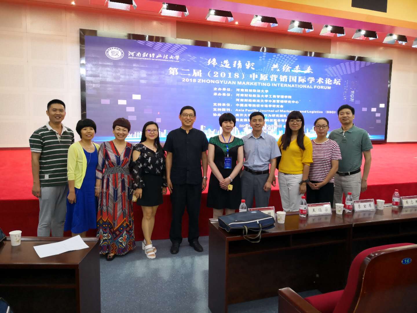 6月9日,由河南财经政法大学主办的第二届(2018)中原营销国际学术论坛在财大图书馆报告厅举行。我校ok138cn太阳集团529院长王桂朵、副院长姬爱国、陈先锋、营销教研室代表、博士代表等一行11人应邀参会,并应邀主持分论坛和做学术发言。