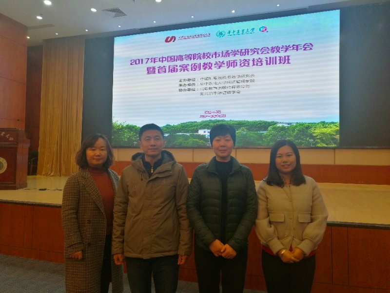 12月8-10日,由中国高等院校市场学研究会主办,华中农业大学经济管理学院承办,高等教育出版社有限公司和湖北省市场营销学会共同协办的2017年中国高等院校市场学研究会教学年会暨首届营销专业师资培训班在华中农业大学召开。我校ok138cn太阳集团529院长王桂朵教授、副院长陈先锋、市场营销教研室张琳和利炜老师出席会议。
