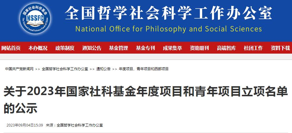 9月4日,全国哲学社会科学工作办公室公示了2023年国家社科基金年度项目和青年项目立项名单,我院教师闫超华博士的《黄河流域资源型城市收缩效应测度、发生机理及应对策略研究》成功上榜年度一般项目名单,拟获立项资助20万元。
