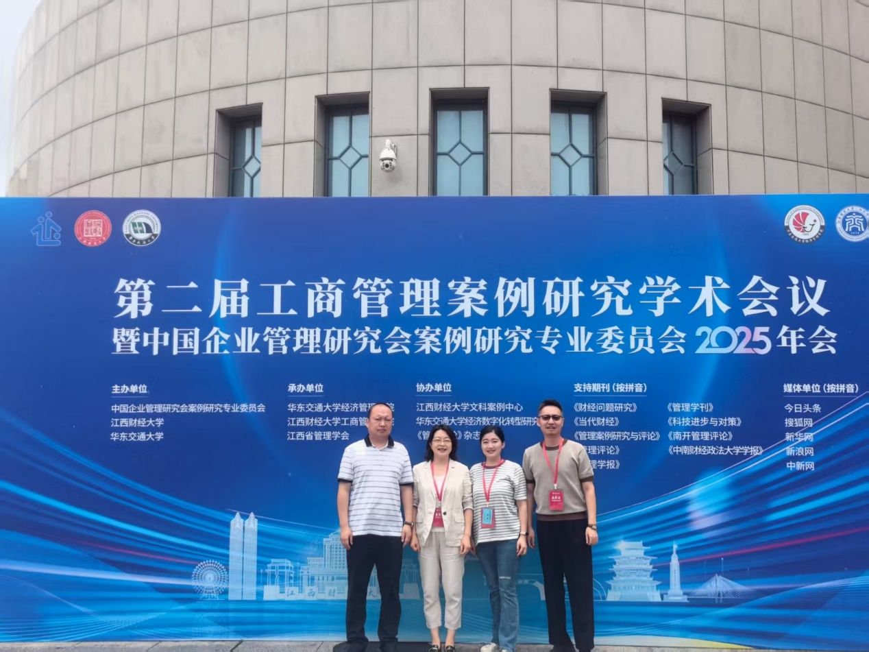 2025年6月7日至8日,ok138cn太阳集团529副院长何丽娜教授带领工商管理教研室主任陈科博士、市场营销教研室主任张长浩副教授、数字营销教研室副主任崔争艳博士一行,赴华东交通大学参加第二届工商管理案例研究学术会议暨中国企业管理研究会案例研究专业委员会年会。本次会议由中国企业管理研究会案例研究专业委员会、江西财经大学、华东交通大学联合主办,聚焦“新业态、新技术、新挑战下的企业管理实践”,旨在深化案例研究理论与实践融合,推动方法论创新。