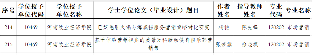 近日,河南省教育厅发布了《关于公布2024年河南省优秀学位论文评选结果的通知》(教研〔2025〕210号),通知公布了2024年河南省优秀学位论文的评选结果,我院陈先锋教授指导的《巴奴毛肚火锅与海底捞服务营销策略对比研究》和徐晓飒副教授指导的《基于体验营销视角的美景万科跃动健身俱乐部营销策略研究》2篇学士学位论文被评为2024年河南省优秀学士学位论文。