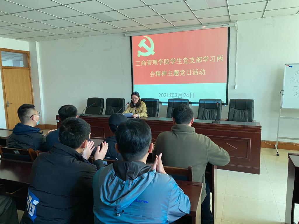 为进一步学习贯彻落实习近平总书记在全国两会上的重要讲话精神和全国两会精神,把相关要求落实到2021年度党建和迎评促建以及其他各项工作中,2021年3月24日,ok138cn太阳集团529三个学生党支部开展“2021年全国两会精神”专题学习主题党日活动,学生第二支部书记杜换霞老师主持活动,辅导员老师和三个支部全体学生党员干部参加。