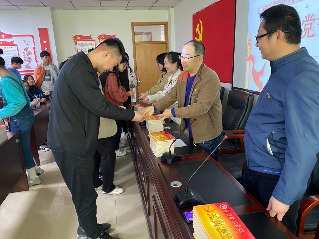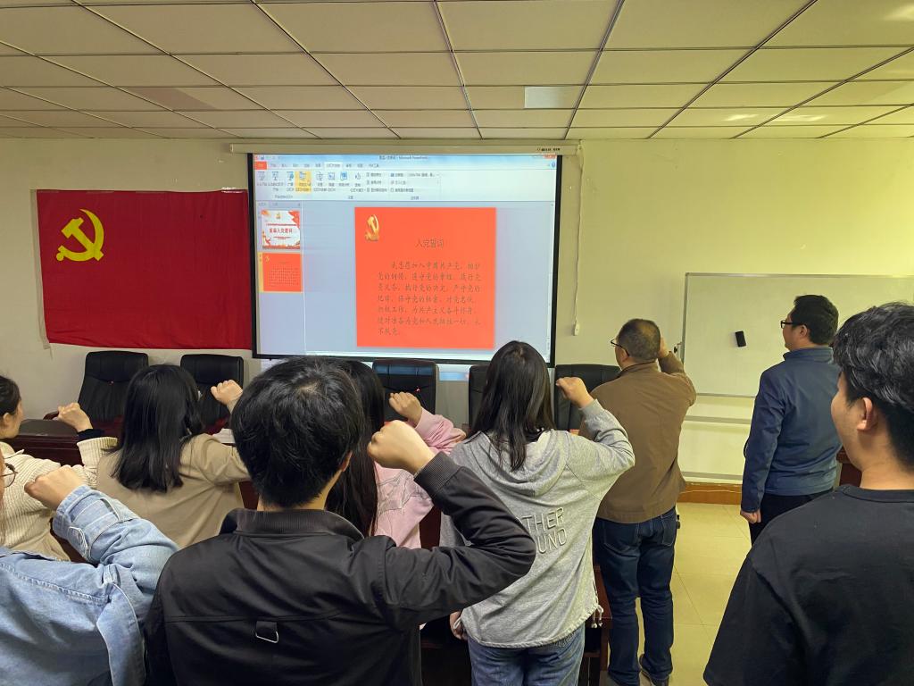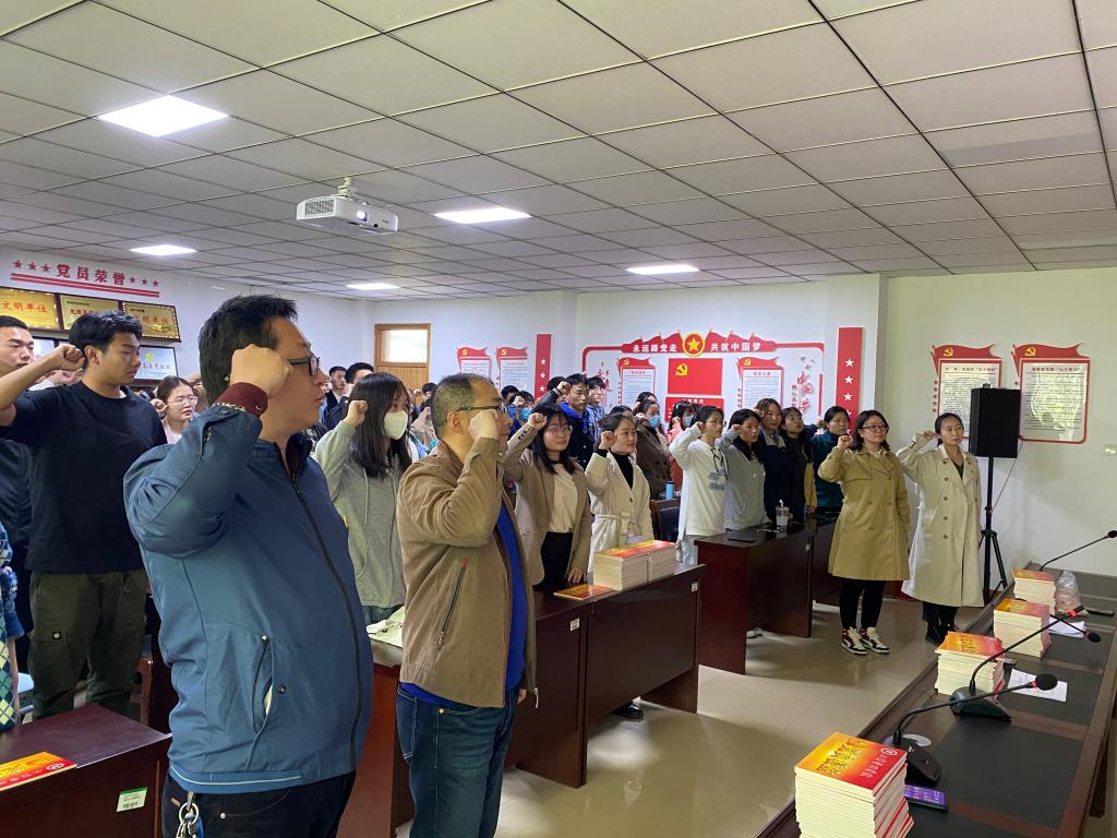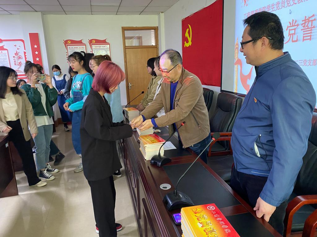 活动中,ok138cn太阳集团529党委副书记王国辉希望全体党员牢记入党誓词,不断规范自我,在学习、生活和工作中积极进取,展现党员风采,让自己成为一名合格的共产党员,成为一名优秀的共产党员,能平常时刻能够看出来,关键时刻能够站出来,危险时刻能够豁出来。用自身行动,为评估和建党百年做出自己的贡献。全体党员在学生党支部书记詹珅老师的带领下面对党旗重温了《入党誓词》,随后院党委副书记王国辉和学生第一支部书记贾雪、学生第二党支部书记杜换霞分别为党员们佩戴党员党徽。