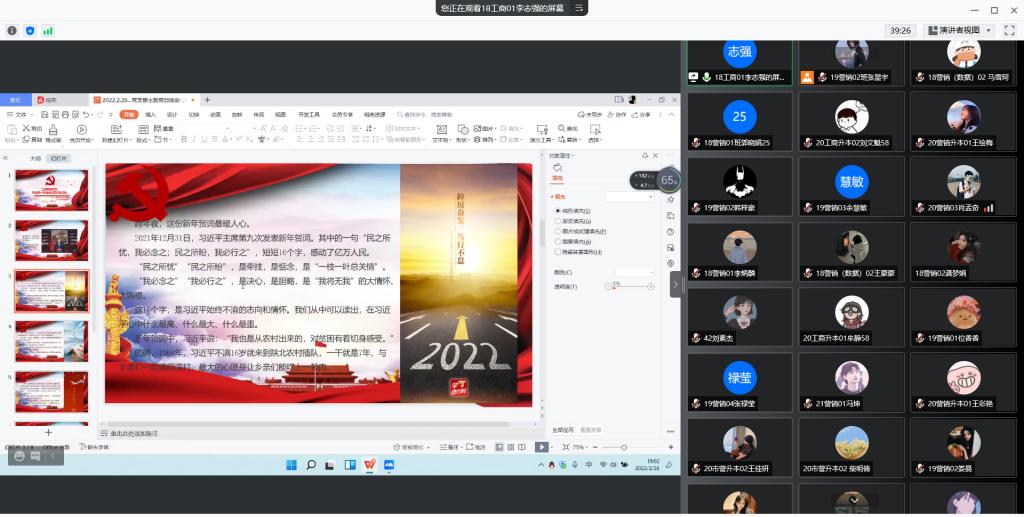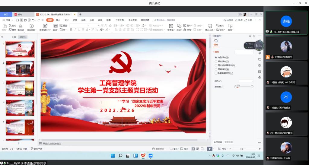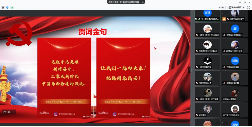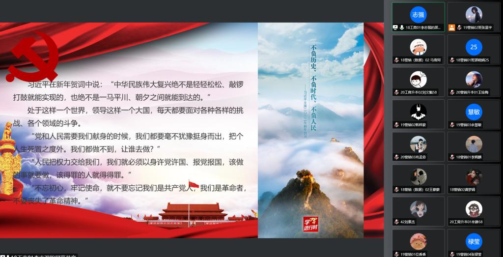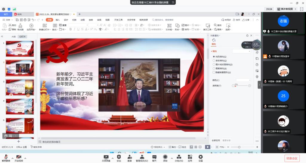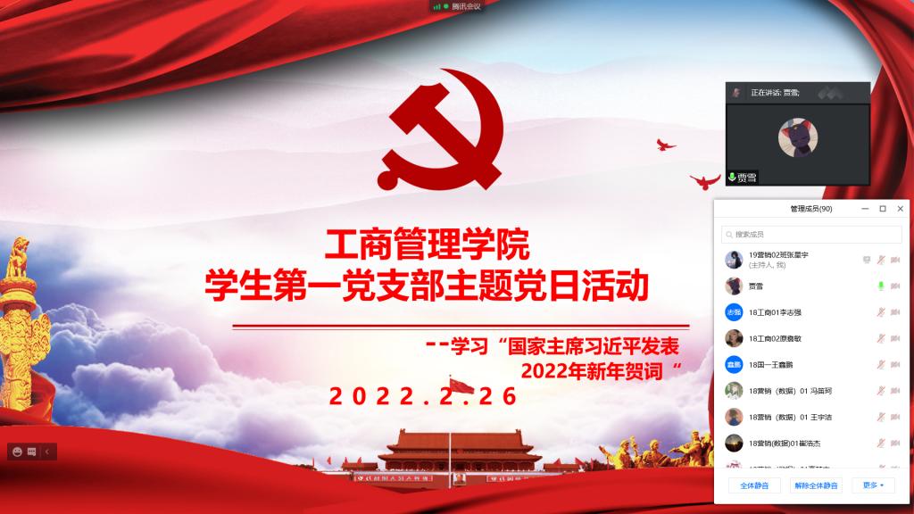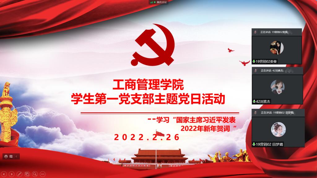 为切实提升学生党员政治素养和党性修养,提高学生党员的思想政治素质,增强学生党员的责任感与使命感,ok138cn太阳集团529学生第一党支部于2月26日晚19:00通过线上会议的方式开展以“国家主席习近平发表2022年新年贺词”为学习内容的主题党日活动,学生第一党支部书记贾雪、组织委员孟琪、宣传委员古海云和支部全体在校生党员参加了此次会议。