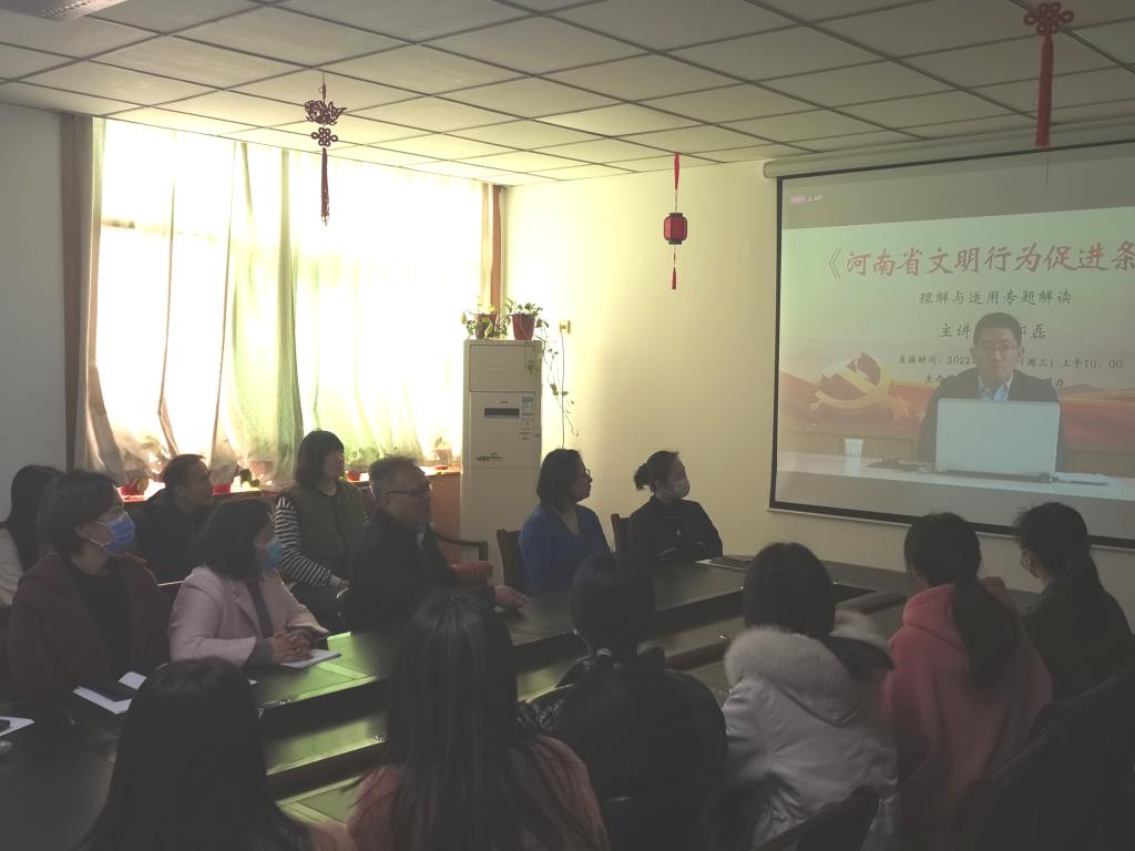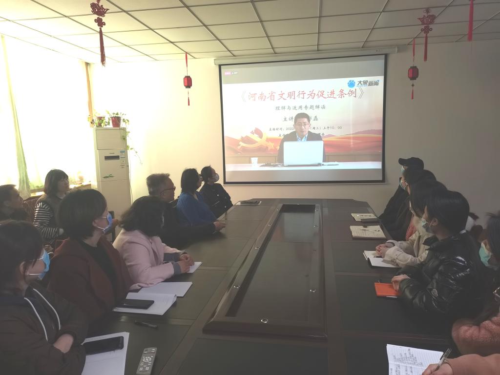为进一步培育和践行社会主义核心价值观,弘扬中华民族传统美德,不断提高ok138cn太阳集团529全院师生文明素养,提升干部服务师生的能力作风建设,促进文明行为内化于心、外化于行,3月2日上午,ok138cn太阳集团529组织老师认真学习了郑州大学法学院副教授郑磊专题解读《河南省文明行为促进条例》视频直播。