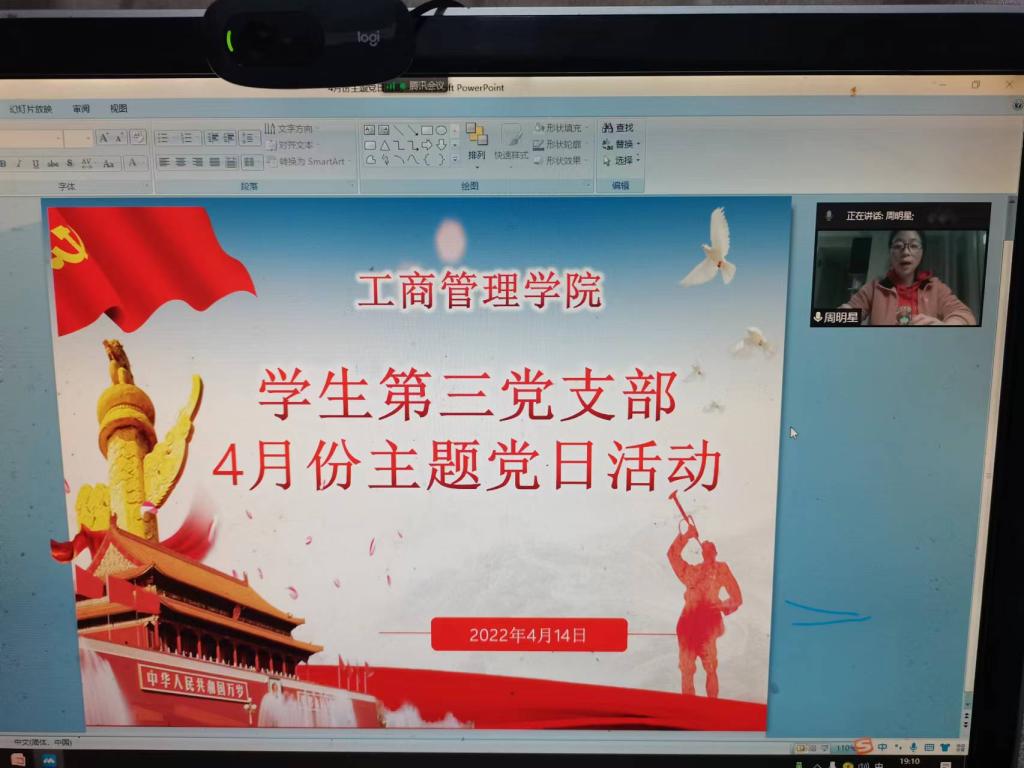 为深入学习贯彻省第十一次党代会精神,根据"能力作风建设年"活动统一安排,聚焦实施"十大战略",4月14日晚,ok138cn太阳集团529学生第三党支部组织开展了“加强十大战略学习 提高能力作风建设”主题党日活动,为配合疫情防控工作,此次活动通过腾讯会议开展,支部全体党员象参加理论学习。