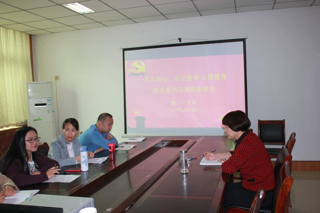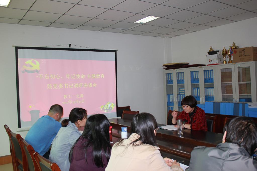 为扎实开展学校“不忘初心、牢记使命”主题教育,贯彻落实“守初心、担使命、找差距、抓落实”的工作要求。10月23日,ok138cn太阳集团529党委书记王桂朵深入教工一支部听取意见,开展调研活动。