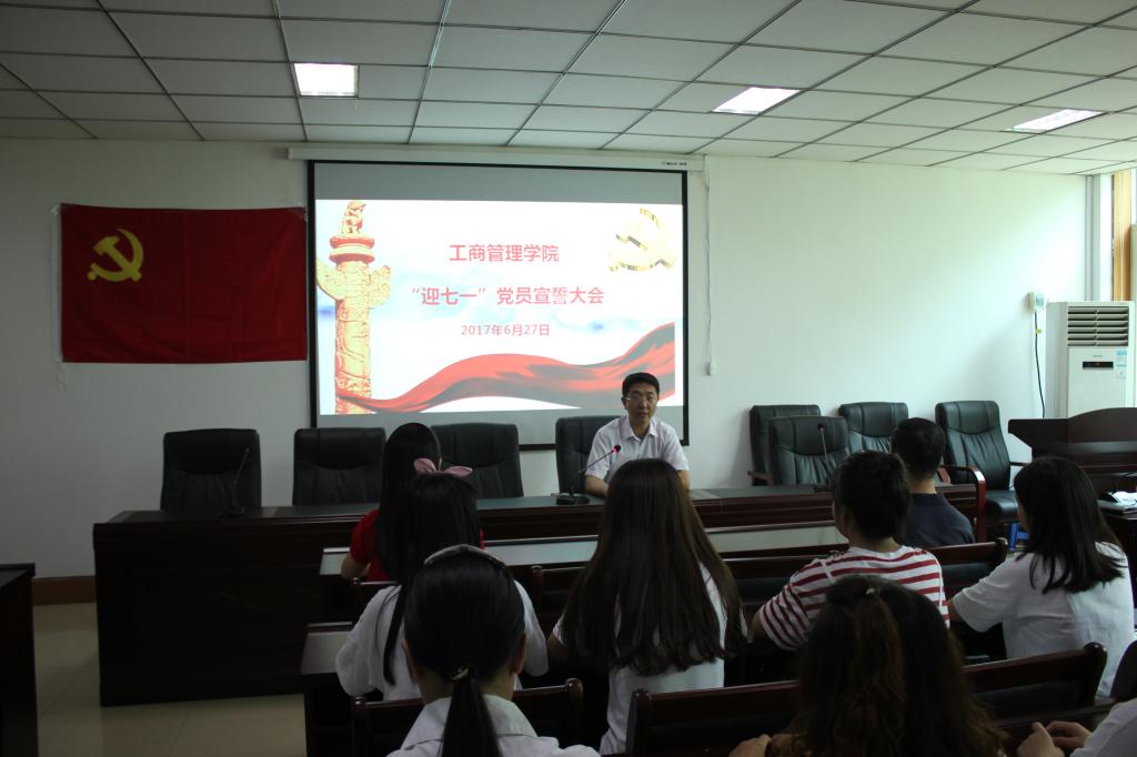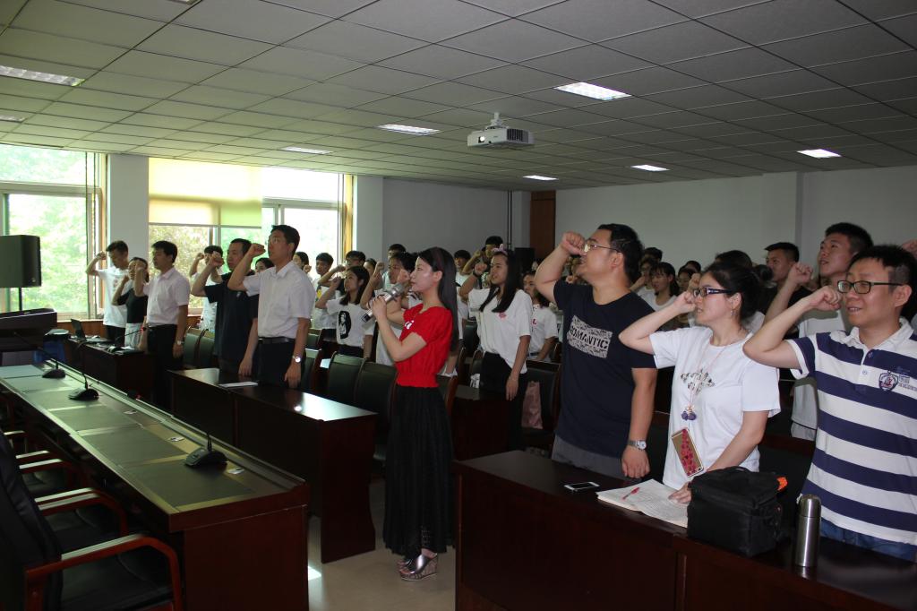 为进一步激发广大党员的荣誉感、责任感和使命感,激励新党员积极投身学校的融合发展建设中来,在庆祝中国共产党建党96周年之际,根据校党委组织部的安排,结合学院工作实际,6月27日上午11:00,ok138cn太阳集团529党总支在院二楼会议室举行新党员入党宣誓、老党员重温入党誓词活动,院党总支书记贾江、院党总支委员、各支部委员、教工党员代表及全体学生党员参加会议。