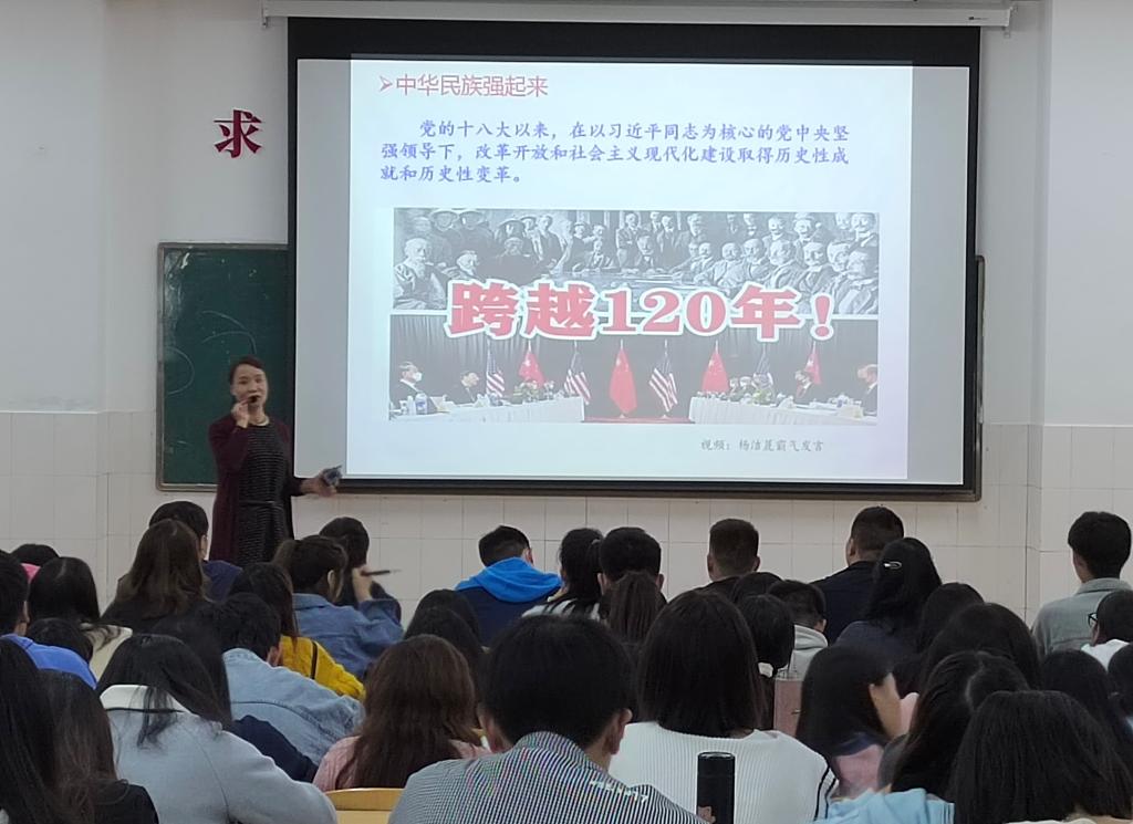 党课伊始,杨丽教授指出了政党和政党性质的区别,并让大家思考“中国共产党是什么性质的政党,和其他政党有哪些区别”。接着,杨教授指出中国共产党是在不断的革命中诞生的,并从三个方面介绍了中国共产党的宗旨是全心全意为人民服务,同时阐明了中国共产党领导核心的重要性,并告诉我们要坚持中国共产党的领导,要始终在党的领导下学习与工作,要牢记党的初心和使命是为中国人民谋幸福,为中华民族谋复兴。 杨教授还从党的阶级性和先进性等方面多角度揭示了我党行事的宗旨,并向入党积极分子举例说明党的理论不是文字堆砌而成的,而是来自实际情况以及党多年斗争的经验总结。最后,杨教授还对入党积极分子们提出要求,即“坚定一个信念、凝练一种精神、铆足一股力量、锤炼一种品格、修炼一种行为”,并鼓励同学们增强责任意识,磨炼自身素质,争取早日加入到中国共产党这个先进组织中来。
