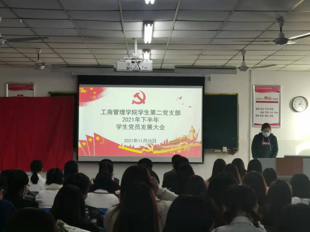 会议开始,由各支部书记公布到会党员人数,符合开会条件后,各支部发展对象上台发言,汇报成为积极分子后在思想、学习、生活中的表现,然后对发展对象培训期间的学习进行总结并对成为预备党员后的各个方面进行规划。接下来其入党介绍人依次发表意见,党支部对申请人征求党内外群众意见,随后与会正式党员进行表决。最后全体新接收预备党员面向党旗庄严宣誓,各支部成员重温入党誓词。会议临近尾声,各个支部书记对新接收的预备党员表示祝贺,同时也对全体党员提出希冀,希望大家时时刻刻牢记党员身份,不忘入党初心,加强党的基本理论知识学习,以党章的要求作为自己的行为准则,时刻牢记全心全意为人民服务的宗旨。作为大学生党员要勇于承担责任,积极进取,不断努力,成为国家需要的高层次人才,为实现伟大的目标不懈奋斗。