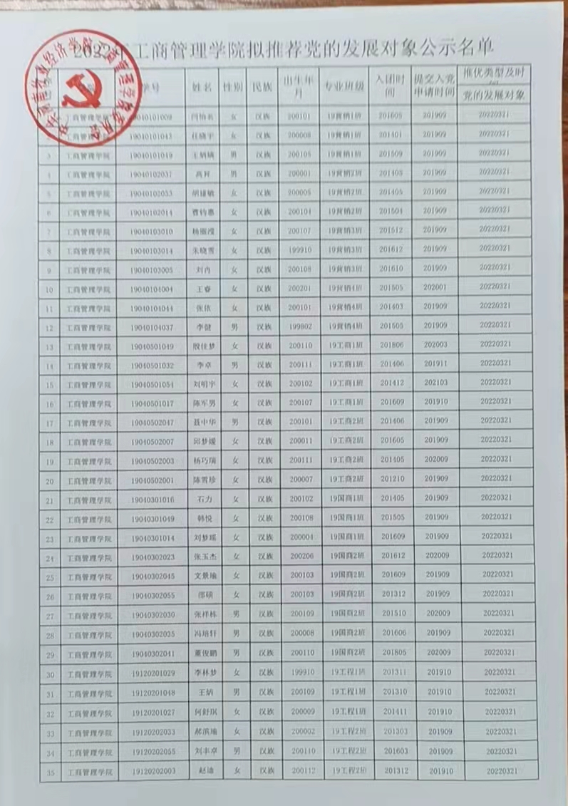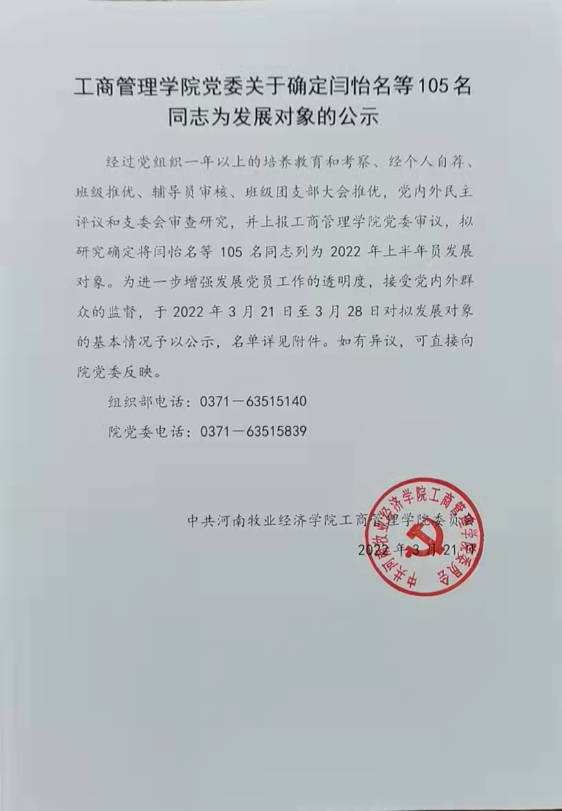 ok138cn太阳集团529党委关于确定闫怡名等105名同志为发展对象的公示