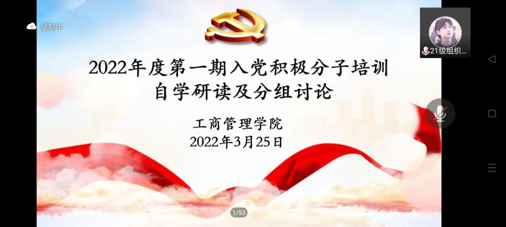 为使入党积极分子提高思想觉悟,坚定理想信念,增强党性观念,加强党性锻炼。3月25日晚七点,ok138cn太阳集团529通过线上方式开展2022年第一期入党积极分子培训班第四讲——自学研读及分组讨论,共149名入党积极分子参与本次培训。