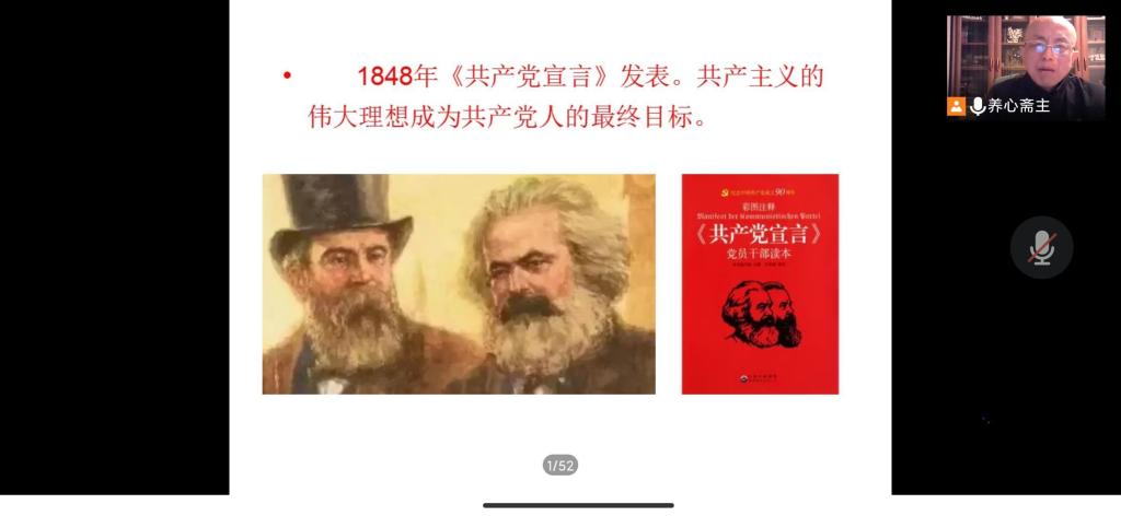 培训中,李勇教授阐述了社会主义从萌芽到成熟的过程,剖析了中世纪乌托邦的空想社会主义,讲解了西方古代和近代的社会理想观的不同。随后,李勇教授根据《共产党宣言》向同学们提出,党的最高理想和最终目标是实现共产主义。而后,他进一步阐述共产主义的内涵和共产主义社会的基本特征,并着重强调实现共产主义是人类社会发展的必然趋势。最后,李勇教授谈到理想信念是人们对未来的向往和追求,是人们政治信仰和世界观在奋斗目标上的具体体现。