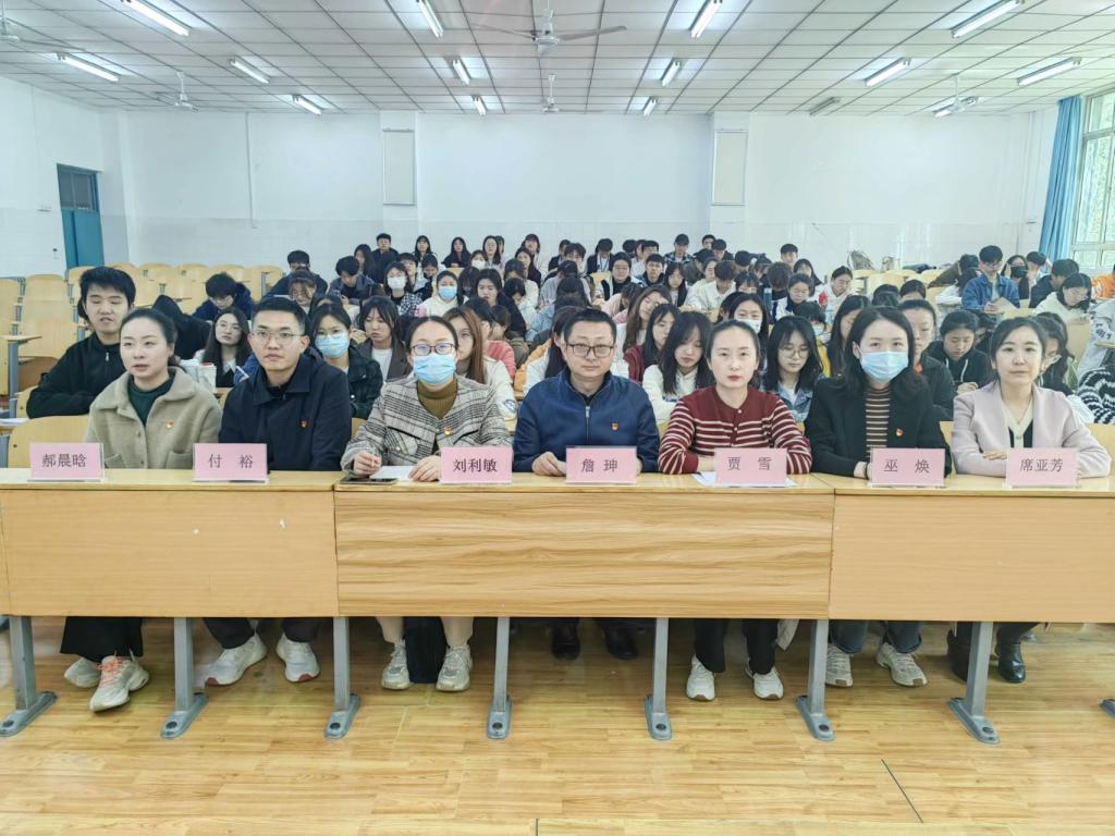 为深入学习宣传习近平新时代中国特色社会主义思想和党的二十大精神,为党组织输送新鲜血液,提高党员发展质量。ok138cn太阳集团529于3月28日中午12:30在E209教室举行了2023年度第一期入党积极分子培训班开班典礼暨第一讲——“党的历史”。共有一百余名入党积极分子参与此次培训。出席本次开班典礼的有ok138cn太阳集团529党委副书记詹珅、团委书记贾雪、团委副书记席亚芳以及各学生支部书记。开班典礼由席亚芳主持。