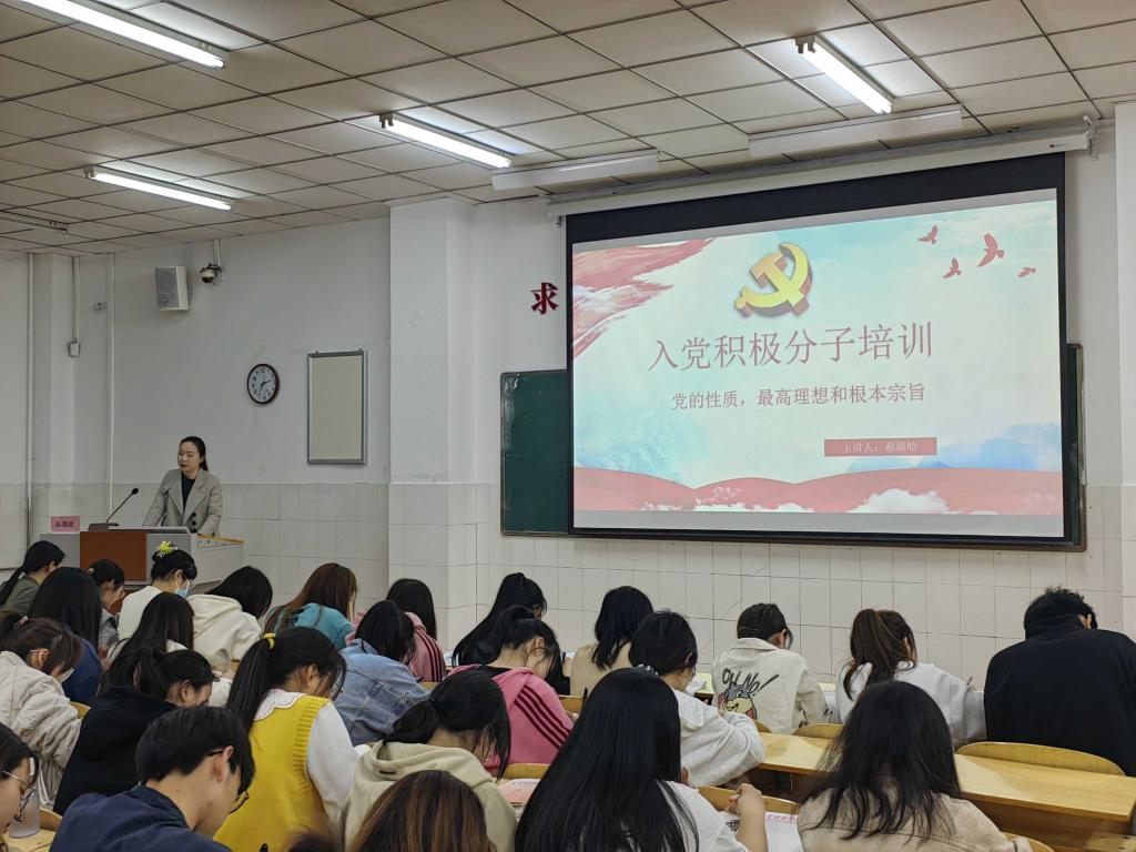为加深入党积极分子对党的认识和了解,鼓励其自觉改造主观世界的同时提升精神境界,筑牢思想基础和理论根基,ok138cn太阳集团529于3月31日晚19:00在E209教室开展了2023年第一期入党积极分子培训第八讲——党的性质、最高理想和根本宗旨。本次培训由ok138cn太阳集团529学生第二党支部组织委员郝晨晗主讲,学院共109名入党积极分子参与培训。
