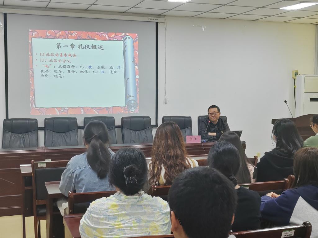 培训中,詹珅通过列举日常生活中随处可见的例子进一步阐述了礼仪对于当代大学生的重要性,充分调动了学员们的学习积极性。接着,他从敲门礼仪、坐姿礼仪等八个方面详细介绍学生干部应具备的基本礼仪。他着重强调,一个人的教养体现于细节,细节展示素质,素质提升形象,同时呼吁学员们做到表里如一。