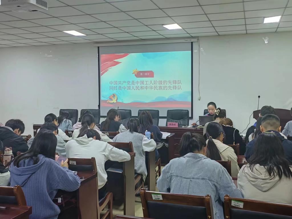 最后,郝晨晗带领入党积极分子回顾百年党史,强调中国共产党自建党以来始终不忘初心,坚持全心全意为人民服务的根本宗旨,始终为中国人民谋幸福、为中华民族谋复兴。中国共产党正团结带领全国各族人民走向通往伟大复兴的中国式现代化道路。