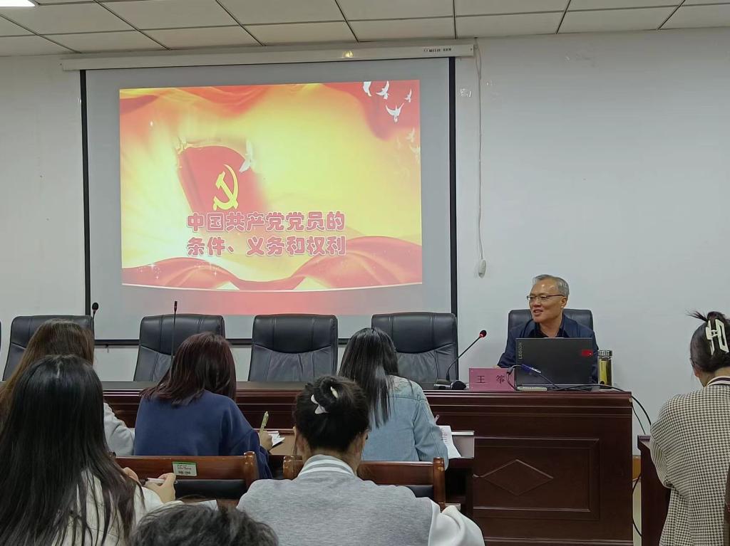 随后,王筝重点围绕“申请入党的条件和成为中国共产党党员的基本条件、党员的义务和党员的权利、党员义务与权利之间的主要关系、党员如何正确履行义务和行使权利”等方面进行全面讲解。