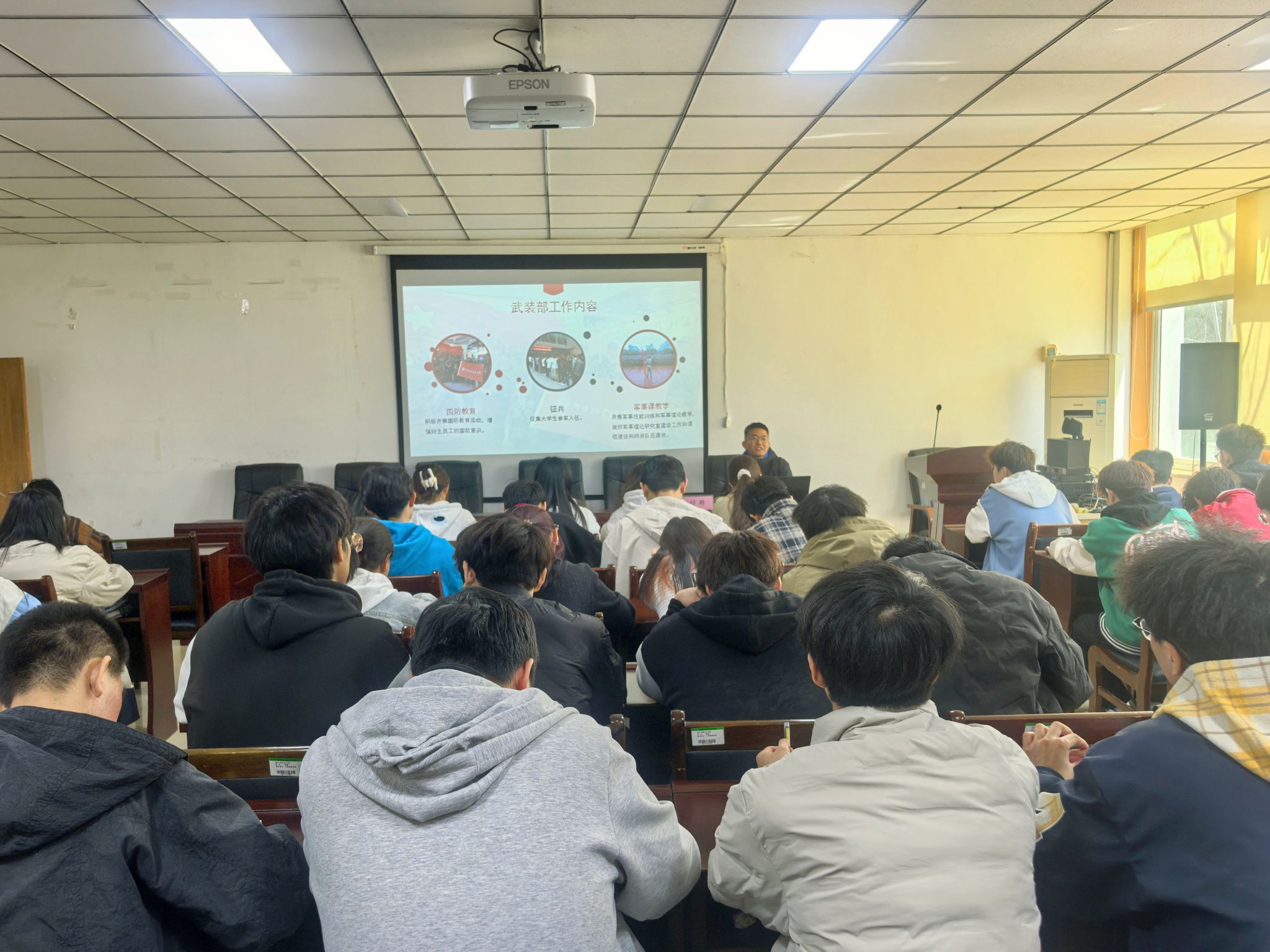 为深入贯彻落实立德树人根本任务,厚植青年学子爱党爱国情怀,强化国防意识,3月18日,ok138cn太阳集团529于227会议室开展2025年“青马工程”大学生骨干培训第六讲,此次讲座以“青春向党铸军魂”为主题。讲座由学生第三党支部书记付裕主讲,全体青马学员参加。