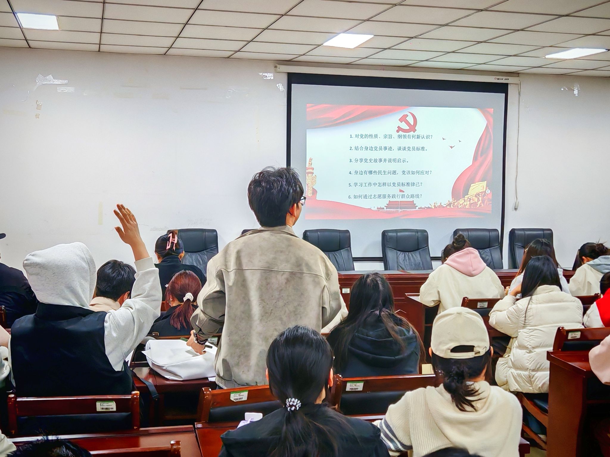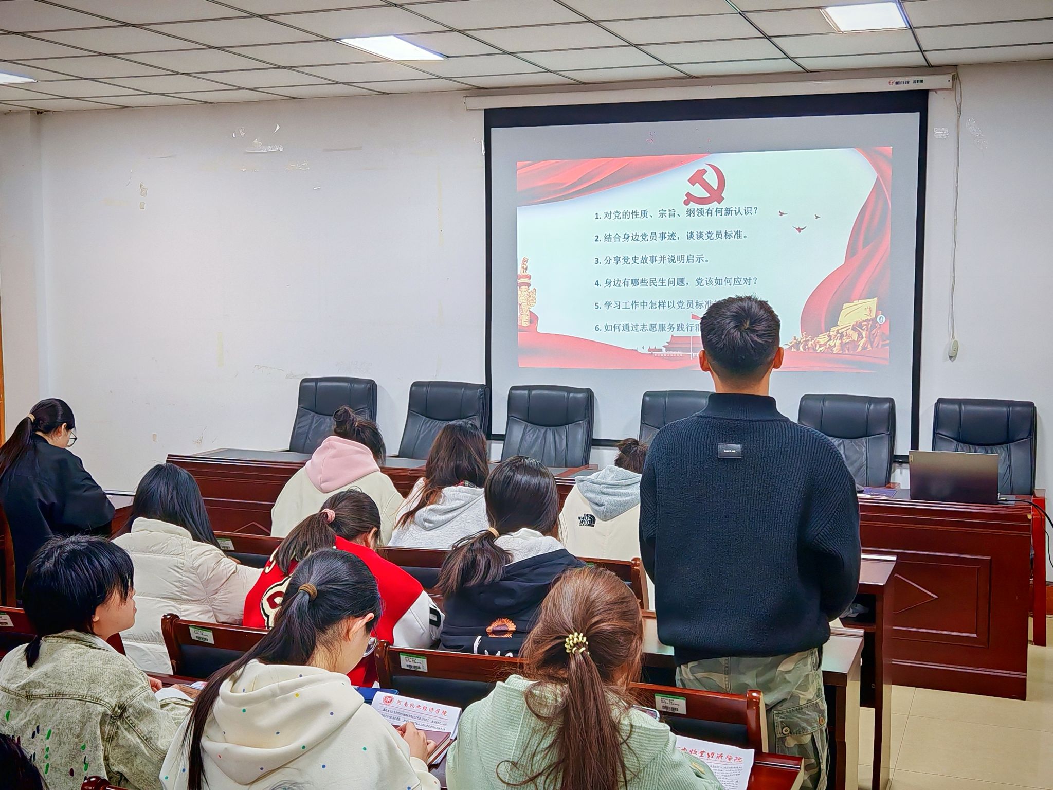 培训伊始,入党积极分子们围绕“党的性质、宗旨及纲领”、“如何发挥党员先锋模范作用”、“怎么以党员标准律己”三个主题进行了热烈讨论并结合党章和党史文献进行深度刨析。在发言环节中,入党积极分子们结合学习内容积极发言,从不同角度探讨党史内涵,并联系实际分享个人感悟,展现出对党的理论学习的自觉性与主动性。最后,主持人对入党积极分子的发言进行总结,呼吁入党积极分子应时刻按照党员的标准严格要求自己,发挥模范带头作用,把思想言行上的理论落实到实际行动中,不断自我提升、自我完善。