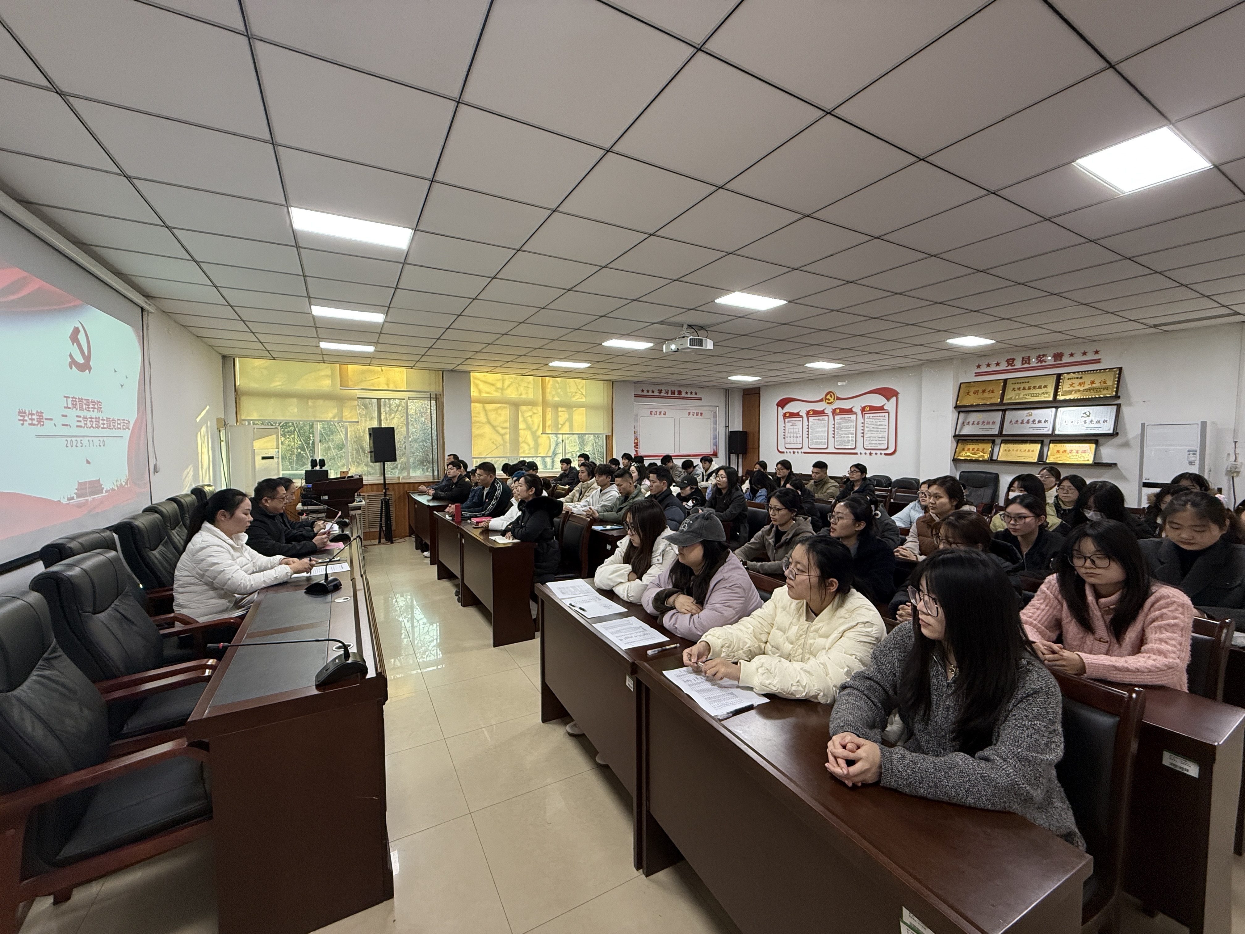 为深入学习贯彻习近平新时代中国特色社会主义思想,强化青年党员理论武装,ok138cn太阳集团529学生第一、第二、第三党支部于2025年11月20日在教学楼227会议室开展主题党日活动。学院党委副书记詹珅、各支部教工党员和全体学生党员共70人参会,活动由詹珅主持。