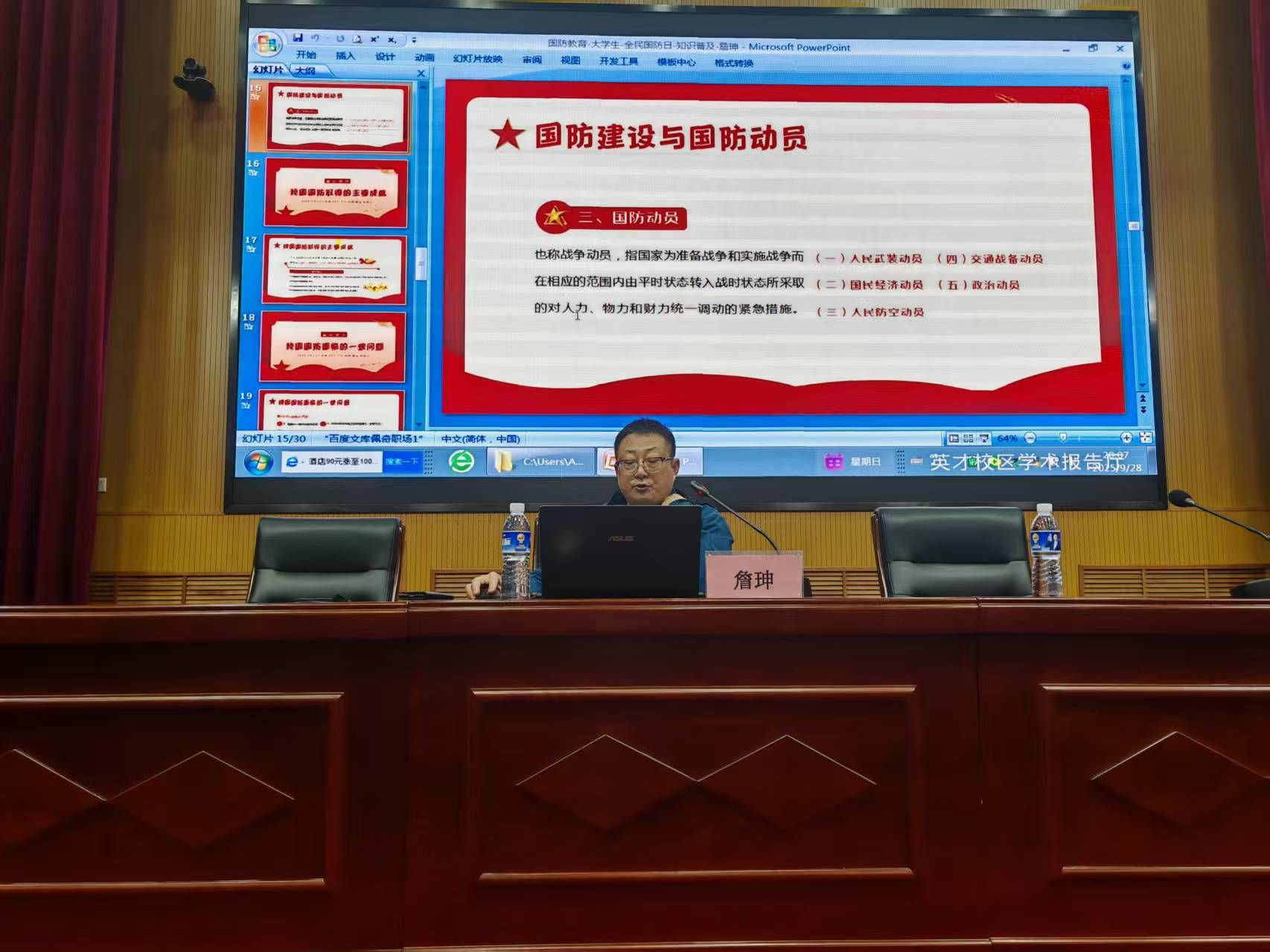 讲座伊始,学院党委副书记詹珅结合当前国际形势,从国防安全的定义、核心内容及重要意义入手,系统讲解了我国国防政策和军队建设成果,让新生们对“国防是国家安全的重要保障”有了直观认知。随后,詹珅通过典型案例分析,重点解读了国防安全与公民个人的关联,涵盖军事安全、信息安全、领土主权安全等方面,生动剖析了潜在安全风险及应对方法,比如如何辨别虚假军事信息、防范网络涉密风险等,引导新生树立“国防安全无小事,人人都是参与者”的意识。最后,詹珅总结强调,国防安全是民族生存发展的根本,希望新生们以此次讲座为契机,主动学习国防知识、增强国防观念,将爱国情怀转化为实际行动,在日常学习生活中自觉维护国家安全,为建设强大国防贡献青春力量。