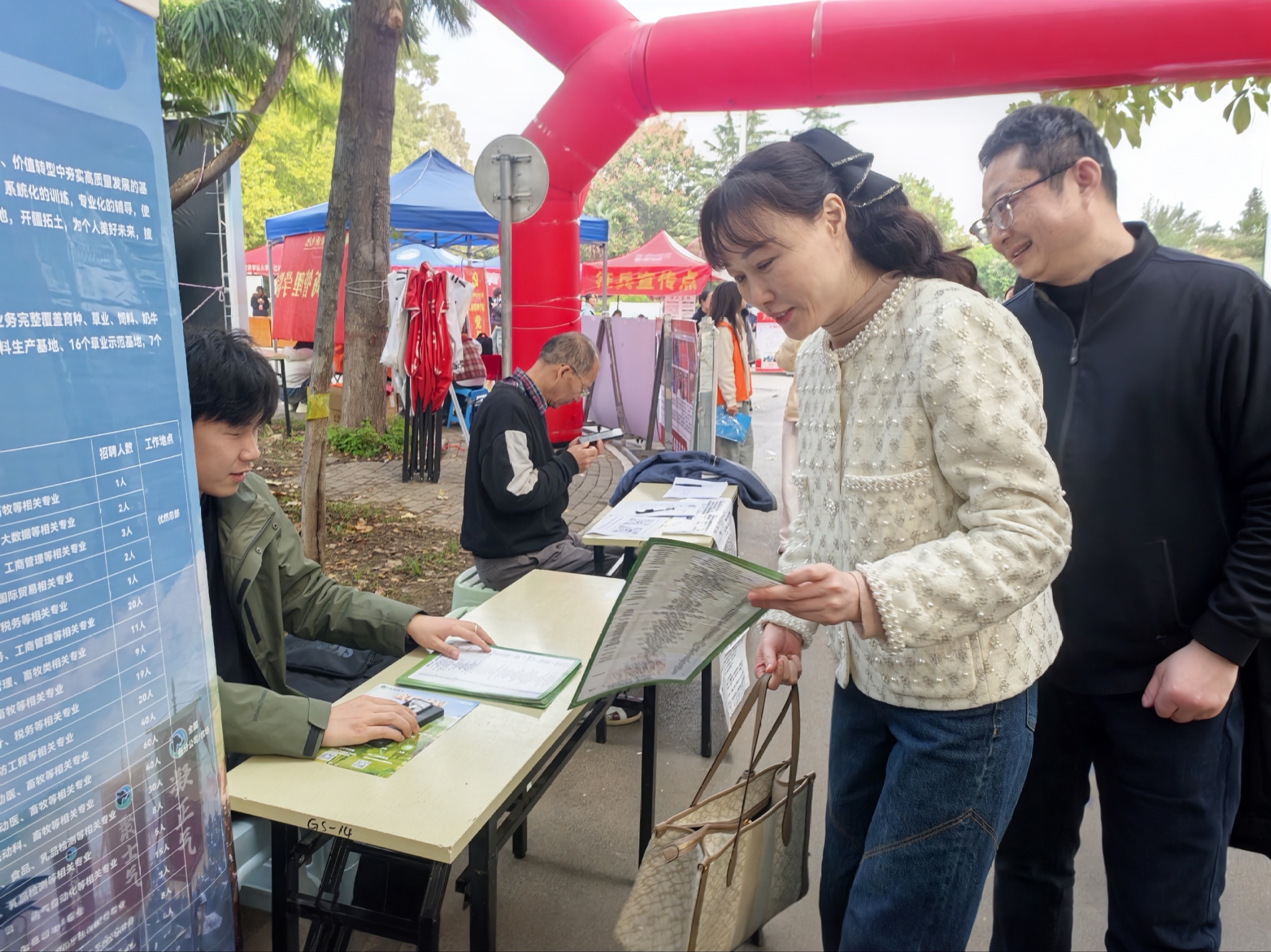 校大学生就业创业指导服务中心主任胡先峰、副主任张琳、学院党委书记王国辉、党委副书记詹珅等领导亲临双选会现场,与企业代表进行深入交流。他们详细询问了企业行业属性、岗位人才需求及培养方向等,为企业提供精准对接服务,为探索校企合作与育人新模式奠定坚实基础。同时,也为毕业生提供现场应聘指导、面试技巧点拨及岗位精准推介,鼓励学生主动与用人单位沟通,助力学生高效求职。活动现场气氛热烈,参会企业通过特色展位布置、详细招聘手册发放等形式,全方位展示企业文化、核心业务、岗位要求、薪酬福利体系等;毕业生们手持简历,主动前往意向企业展开深入交流,企业招聘人员从多维度为学生提供个性化职业建议,帮助学生明确职业方向,提升求职能力,为顺利就业筑牢基础。据不完全统计,本次双选会我院应邀企业共提供岗位740多个,现场收到求职简历460多份,建立求职微信群24个,加群人员1430多个。后期我院将继续和这些企业深度联系,努力为学生提供更多的求职服务,助力毕业生顺利求职成功。
