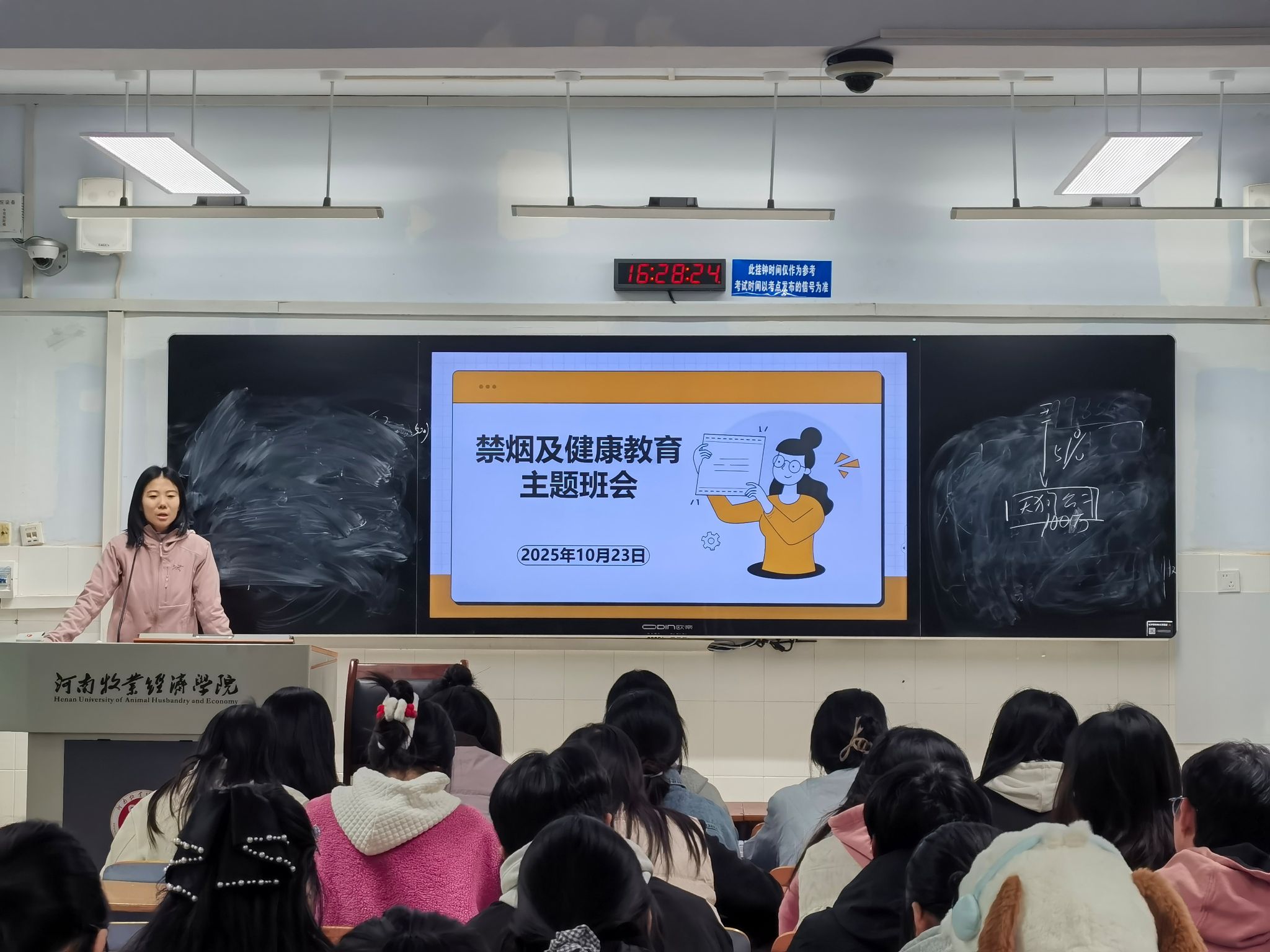 班会期间,老师们借助图文并茂的PPT、生动的视频以及详实的数据和案例,向同学们详细阐述了吸烟对人体健康的多方面危害,涵盖致癌风险、呼吸系统损伤、心血管疾病诱发等,同时还介绍了二手烟、三手烟对周围人群尤其是青少年的不良影响。一幅幅触目惊心的图片、一组组真实的数据,让同学们深刻认识到吸烟不仅是对自身健康的不负责,更是对他人健康的漠视。随后,老师们聚焦校园禁烟工作落地,重点讲解并部署了“校园禁烟三大行动”。一是宣导行动,通过校园广播循环播报、宣传海报全域覆盖、主题班会深度解读等多元渠道,系统普及禁烟知识与法律法规,着力营造“人人知晓危害、人人参与禁烟”的浓厚校园氛围;二是环境行动,针对教学楼、操场等吸烟高发区域强化日常巡查频次,在关键点位增设醒目“无烟校园”提示牌,及时清理烟蒂等垃圾,全力打造洁净清新的校园环境;三是共建行动,积极动员全院师生参与禁烟监督工作,规范设立禁烟志愿者岗,通过友好沟通、文明劝阻等方式引导校园吸烟行为,凝聚起全员共建、共治、共享无烟校园的强大合力。