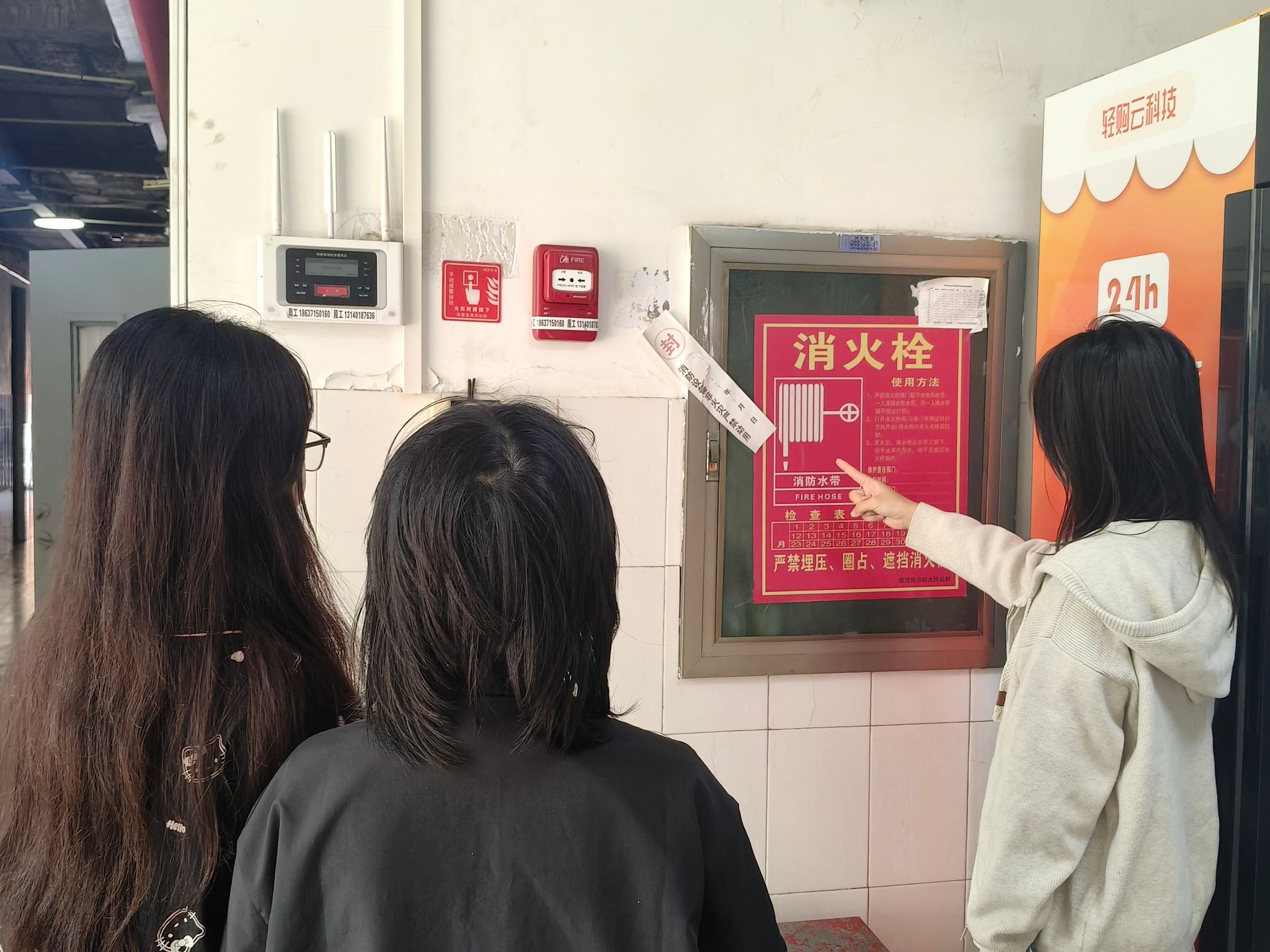 活动期间,同学们热情参与,以高度的责任感与使命感,手持手机认真细致地记录着校园里每一处消防细节。在宿舍区,大家仔细查看灭火器压力表、消防栓水带接口是否完好,每一个动作都严谨认真,不放过任何一个可能存在的隐患,确保每一个消防设施在紧急时刻都能正常发挥作用。在楼道间,大家重点关注应急照明灯是否正常、疏散通道是否畅通无阻,对于堆放在通道的杂物,及时记录并反馈,确保在紧急情况下人员能够迅速、安全地撤离。在实验室,同学们则仔细排查电器线路是否存在老化、破损现象,同时对易燃物品的堆放进行检查,确保其远离火源、通风良好,避免因不当堆放导致火灾事故的发生。同学们通过“随手拍”形式,第一次细致地观察校园消防设施,深刻体会到消防安全与日常生活息息相关,他们也纷纷表示将从身边的小事做起,从每一个细节抓起,真正筑牢校园消防安全的坚固防线。