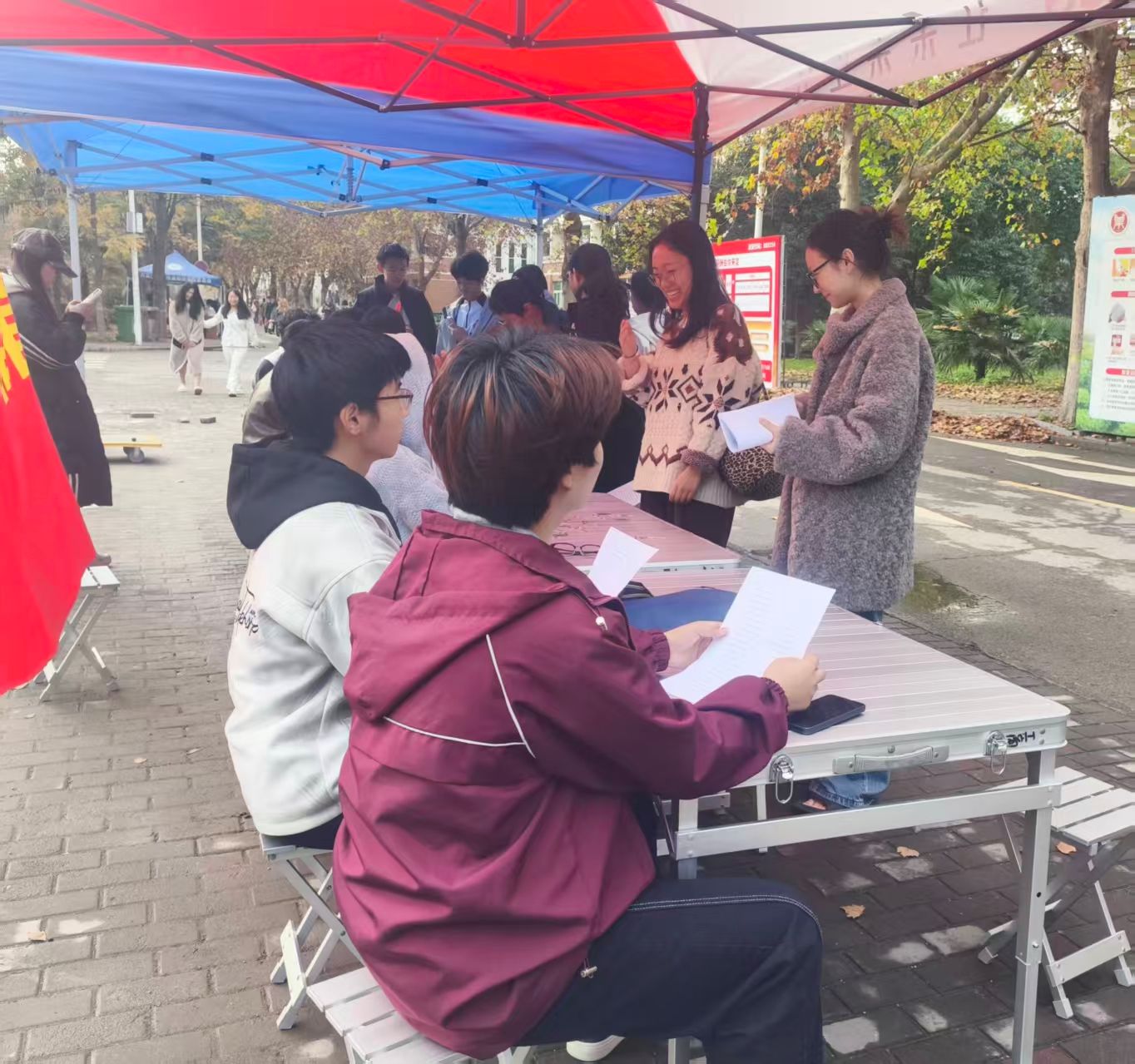 为弘扬中华优秀传统文化,响应校党委学工部的文明养成主题教育方案,提升学生人文素养,搭建以诗交流的文化平台,11月8日,ok138cn太阳集团529在红色花蕊处开展“诗言志:我的一句千古情”主题活动。我院学子踊跃参与,在诗词的韵律与情感中开启了一场文化盛宴。
