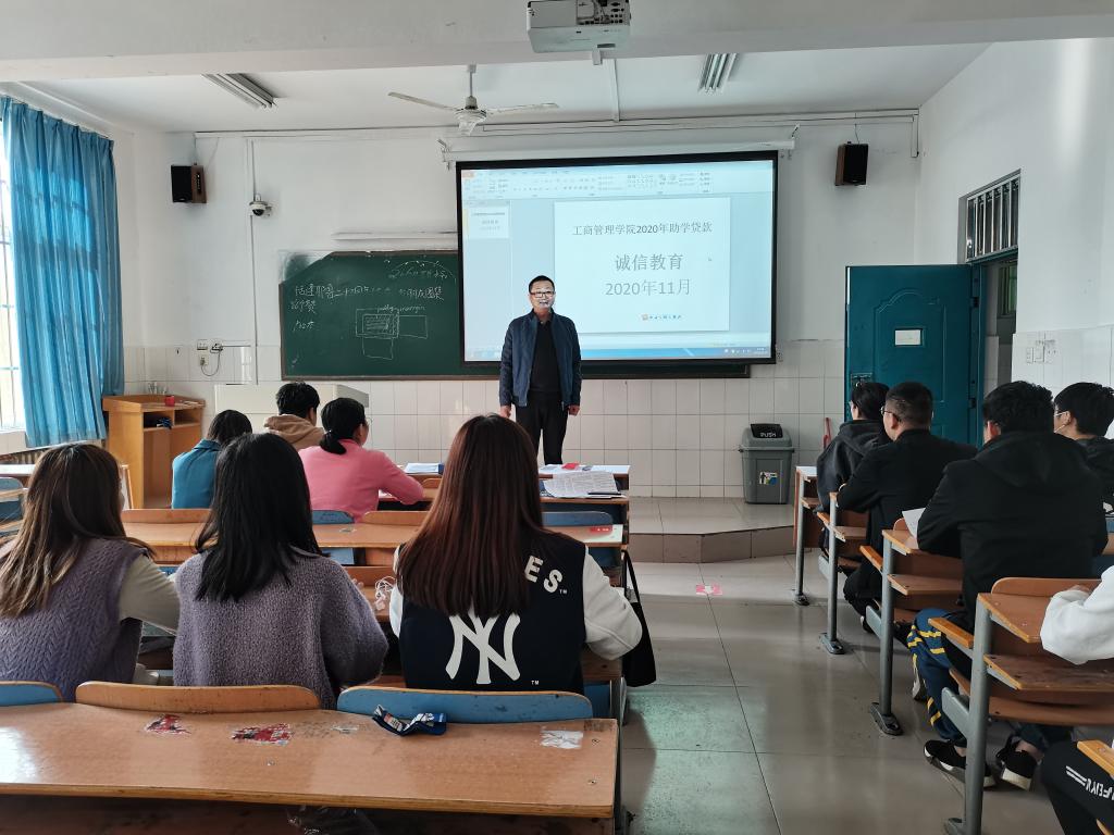 为做好国家助学贷款合同签订工作,进一步强化学生诚信意识,2020年11月4日中午,ok138cn太阳集团529在教学楼A楼413举行2020年度助学贷款合同签订仪式暨诚信教育大会。ok138cn太阳集团529负责贷款的詹珅老师,2020年度校园地国家助学贷款学生参加大会。