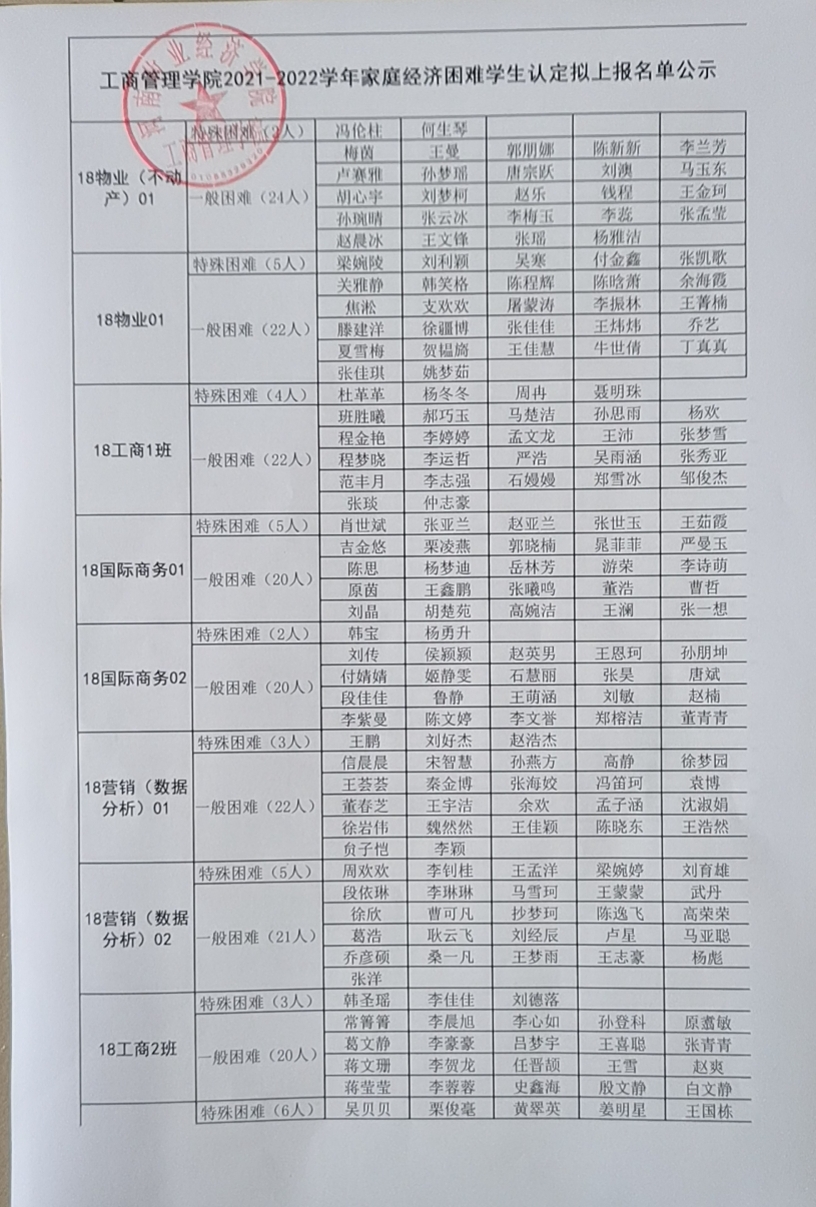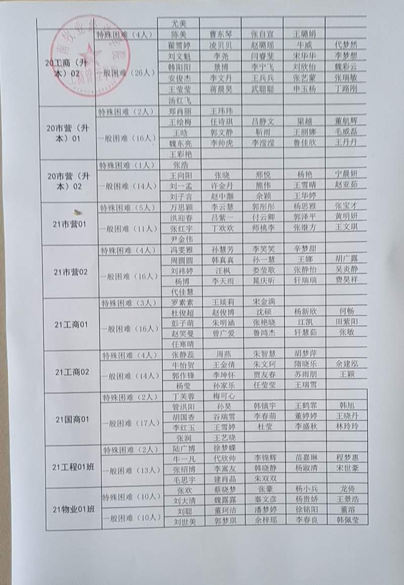 ok138cn太阳集团5292021-2022学年拟推荐困难生认定名单公示