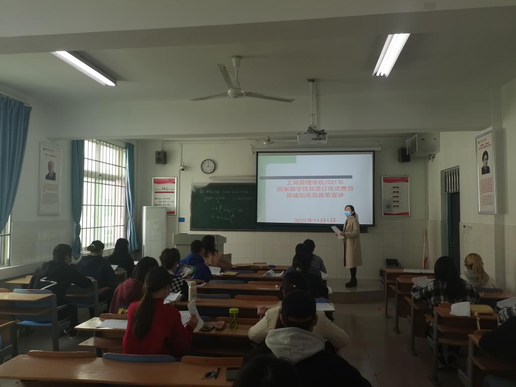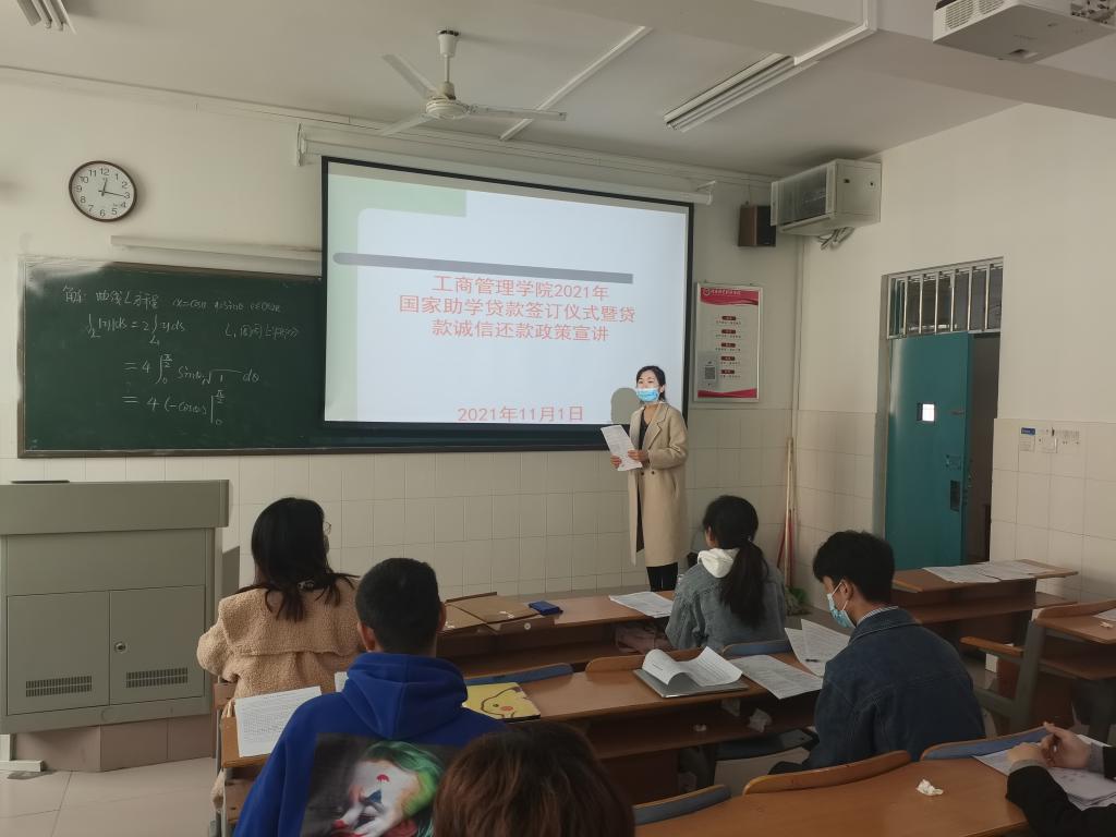 为宣传国家助学贷款相关政策,增强我院学生诚信意识,ok138cn太阳集团529于2021年11月4日中午12:10在教学楼A410教室举行2021年度国家助学贷款合同签订暨贷款诚信还款宣讲会。学院负责贷款工作的席亚芳老师和申请2021年国家助学贷款的本科生、专科生参加了此次会议。