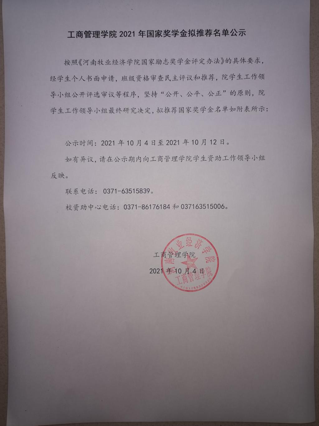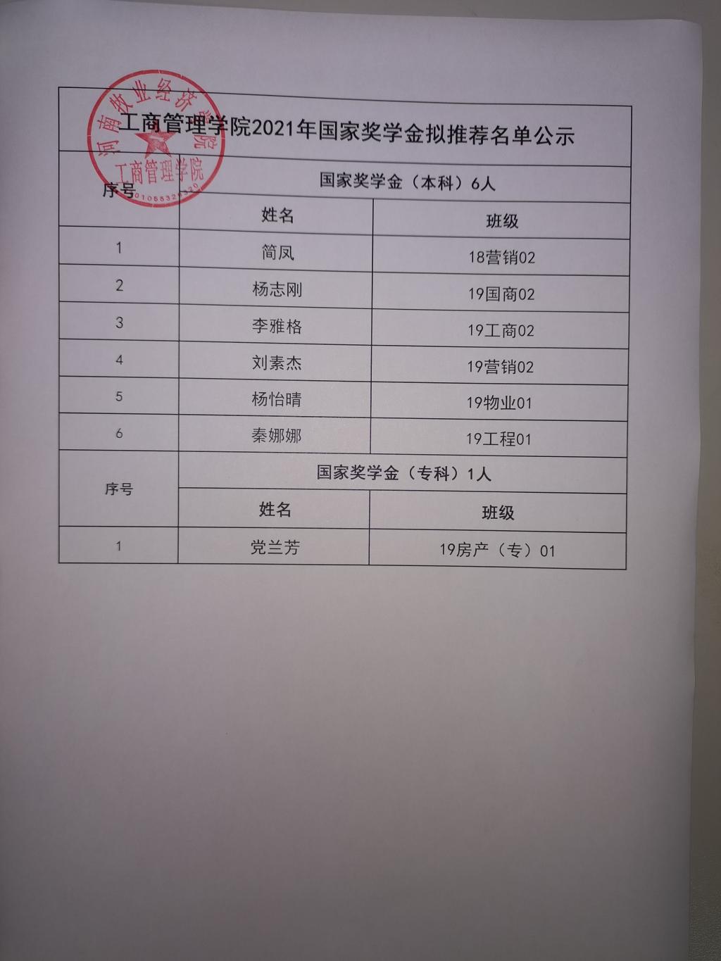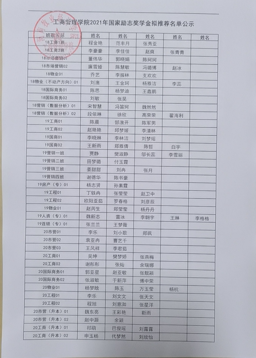 ok138cn太阳集团5292021年国家奖学金、国家励志奖学金拟推荐名单公示