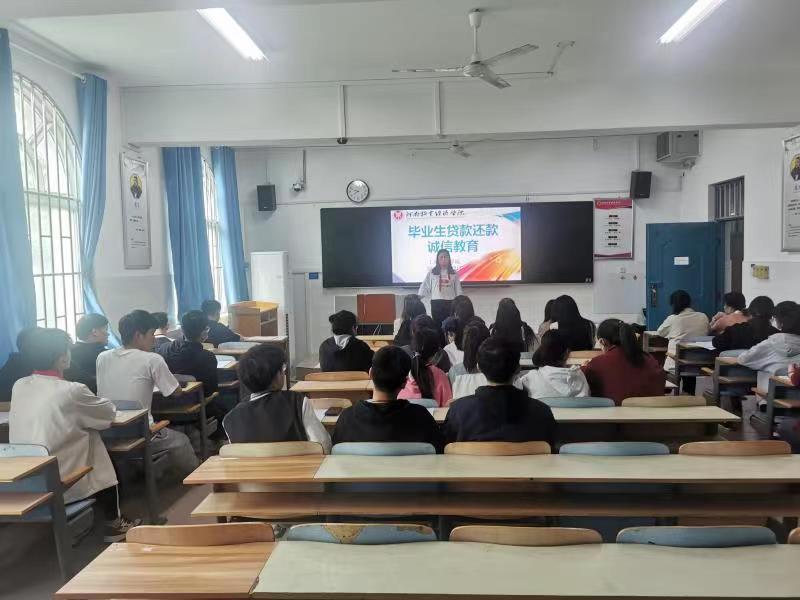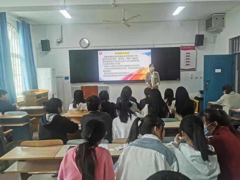 为进一步强化我院2022届助学贷款毕业生感恩诚信教育, 提高毕业生的还款意识和诚信意识,确保贷款毕业生明确具体的还款流程和还款要求以及顺利离校,同事贯彻落实资助政策“两节课”教育,做好国家助学贷款的贷后管理2022年4月29日下午,ok138cn太阳集团529资助专干董燚君、席亚芳老师对贷款毕业生开展2022届毕业生贷款还款主题诚信教育。