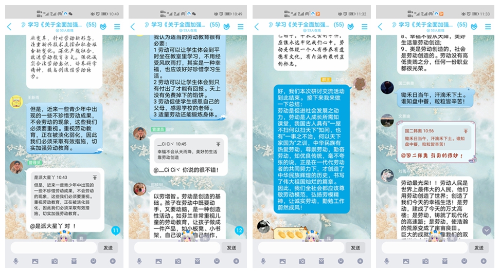 本次研讨交流活动,由学院组织各班利用网播统一观看直播,会后由团支书组织本班同学通过微信、QQ、钉钉等网络平台分享交流学习感悟,领会《意见》精神。通过学习、分享、交流,使学生牢固树立劳动最光荣、劳动最崇高、劳动最伟大、劳动最美丽的价值观、劳动观。