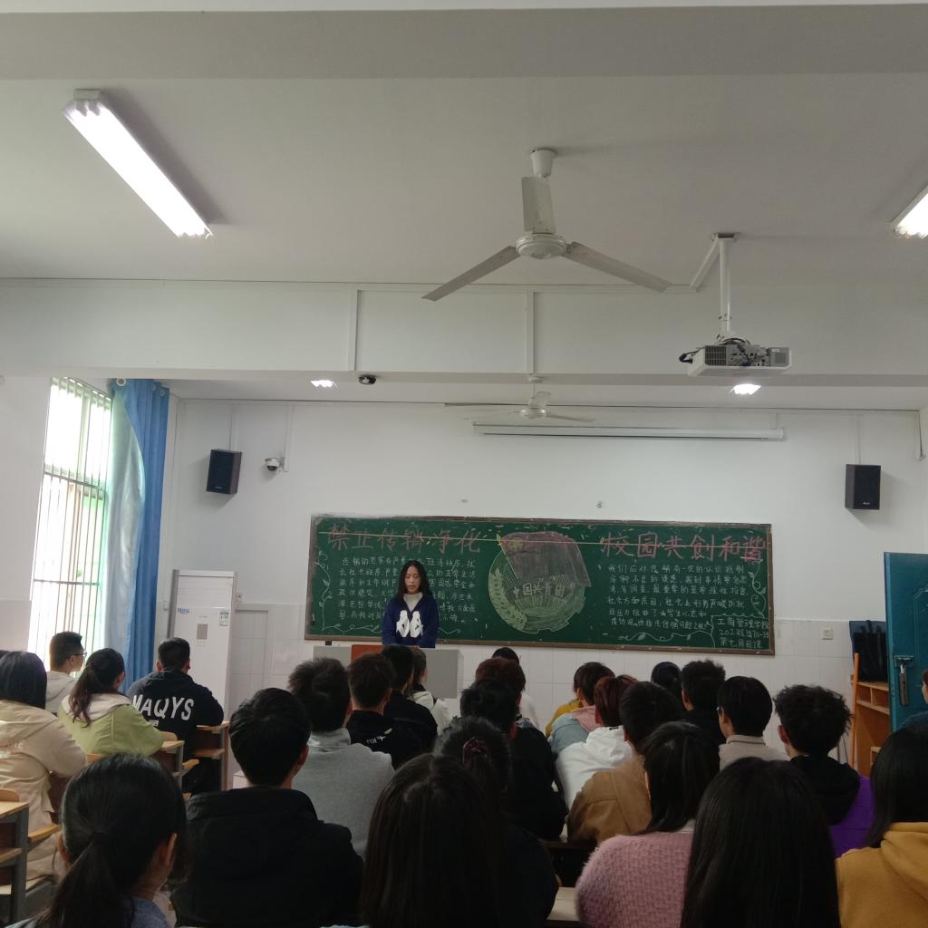 为积极响应我校普法宣传教育,提高同学们对传销的警觉意识,增强同学们辩识、防范、抵制传销的能力,营造健康和谐的校园环境。2020年11月5日15时,我院在英才校区教学楼A楼召开“禁止传销,净化校园,共创和谐”主题团课,参加团课的班级有20工商01、20工程01、20物业01、20国商02。