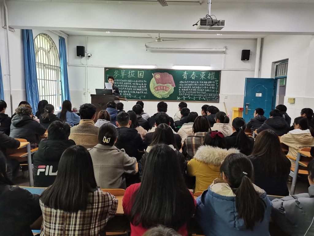 为积极响应国家号召,鼓励同学们投笔从戎,献身国防,担负祖国复国大任,增强国家建设和军事建设,ok138cn太阳集团529于12月17日晚开展了以“参军报国,青春荣耀”为主题的团课。我院400余名学生参加本次主题团课。