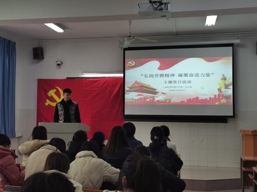 为落实关于组织开展学习《习近平在全国劳动模范和先进工作者表彰大会上的讲话》精神主题党日活动的通知要求,2020年12月17日中午,ok138cn太阳集团529学生第一党支部在教学楼A402教室组织召开了“弘扬劳模精神凝聚奋进力量”主题党日活动。本次活动由学生第一党支部书记贾雪主持,支部组织委员孟琪老师、宣传委员古海云老师以及支部全体学生党员参加本次活动。