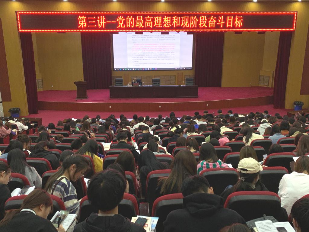 为积极推动入党积极分子培训进程,加深学员对党的认识,端正入党动机,坚定入党决心,加强思想和行为两个方面的自我约束,争取早日加入党组织。4月16日晚上七点半,我院于学术报告厅开展入党积极分子培训课程第三讲。本次讲座由ok138cn太阳集团529正处级组织员李勇教授主讲----《中国共产党的最高理想和现阶段的奋斗目标》,国际教育学院和ok138cn太阳集团529共600余名入党积极分子参加了本次专题讲座。