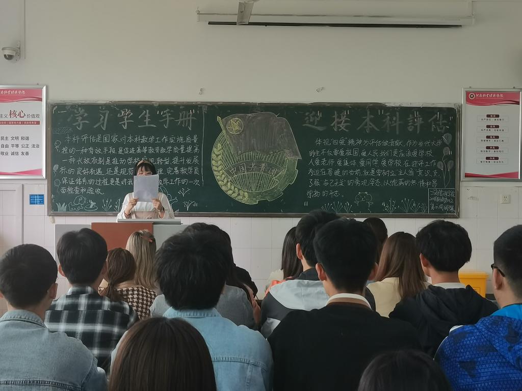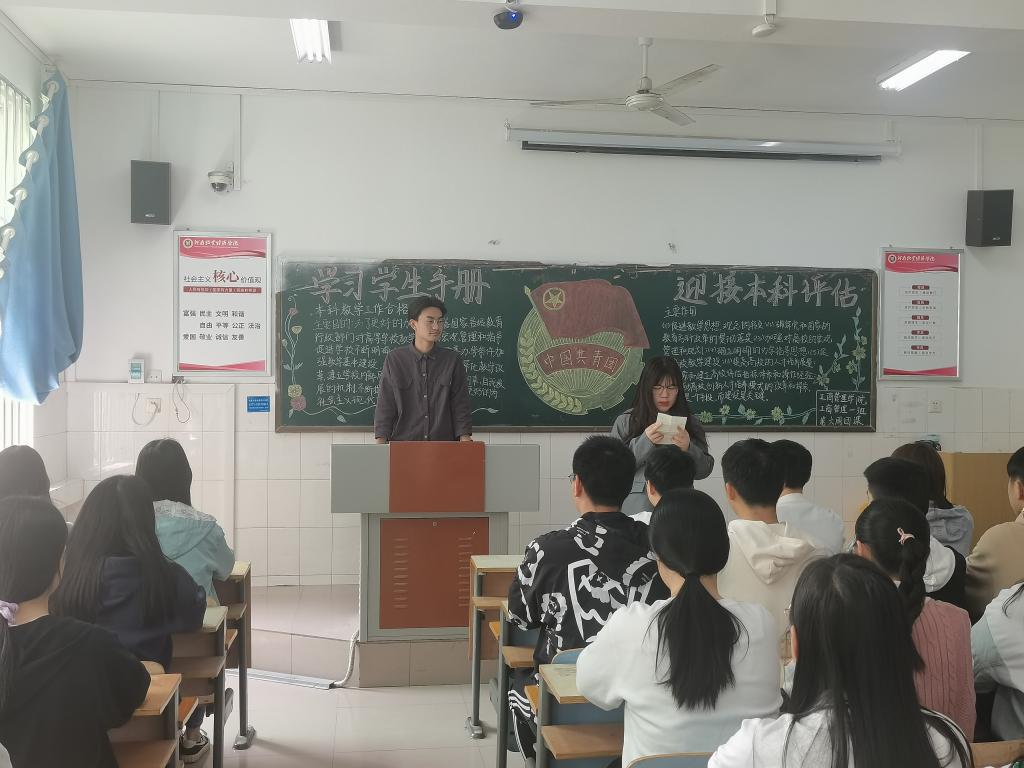 我校迎评估工作已进入最后冲刺阶段,为组织同学们认真学习评估知识手册,以饱满的精神状态迎接评估,ok138cn太阳集团529于4月15日下午开展“学习评估手册,迎接本科评估”主题团课。