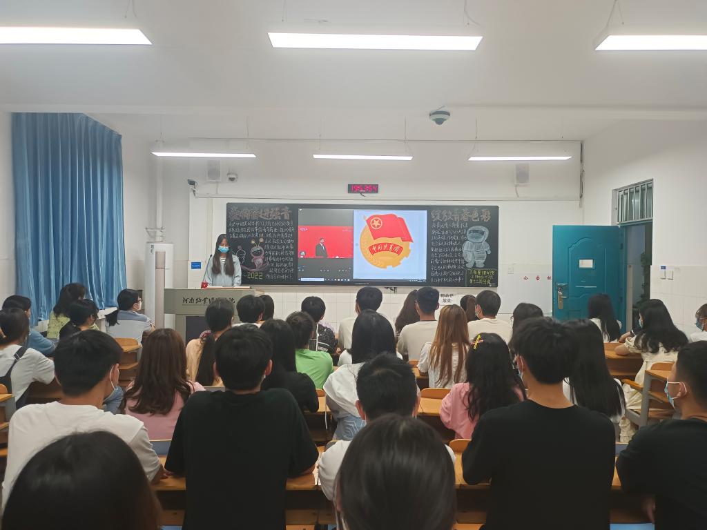 团课伊始,各班团支书带领同学们观看省委书记楼阳生《在现代化河南建设中书写青春出彩篇章》的讲话视频,楼阳生书记强调要认真学习贯彻习近平总书记在共青团成立100周年大会上的重要讲话,牢记领袖嘱托,勇担时代重担,团结带领全省广大团员青年接续奋斗、勇毅前行。观看期间大家认真听讲,全神贯注。随后,各班就楼阳生书记的讲话展开激烈讨论,团员们踊跃发言,21物业01班徐铭阳表示:“我们欣逢盛世,当不负盛世,应自觉把小我融入到祖国和人民的大我之中,在报效祖国、建设家乡、服务人民中书写青春华章”。之后,团支书带领大家学习《郑州市人民代表大会常务委员会关于新冠肺炎疫情常态化防控期间佩戴口罩和使用场所码的决定》,再次向大家表明疫情严峻现状和常态化防控局面,告诫同学们绝不能有任何侥幸心理。大家也纷纷表示会自觉遵守疫情防控有关规定,切实提高防范意识,共同维护校园抗疫成果。