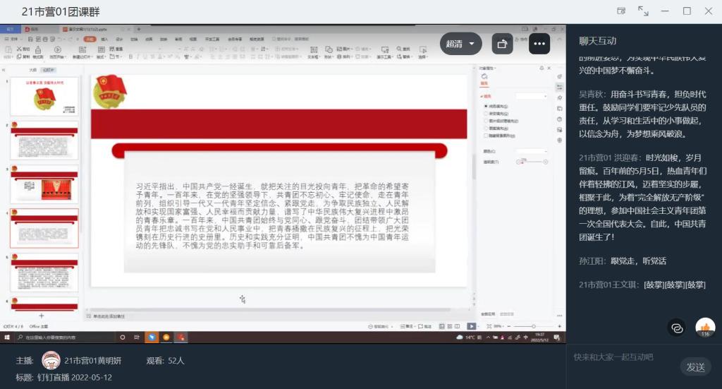 为庆祝中国共产主义青年团成立100周年,激励广大团员青年在实现中华民族伟大复兴中国梦的新征程上奋勇前进。ok138cn太阳集团529于5月12日晚开展“以青春之我,贡献伟大时代”主题团课。